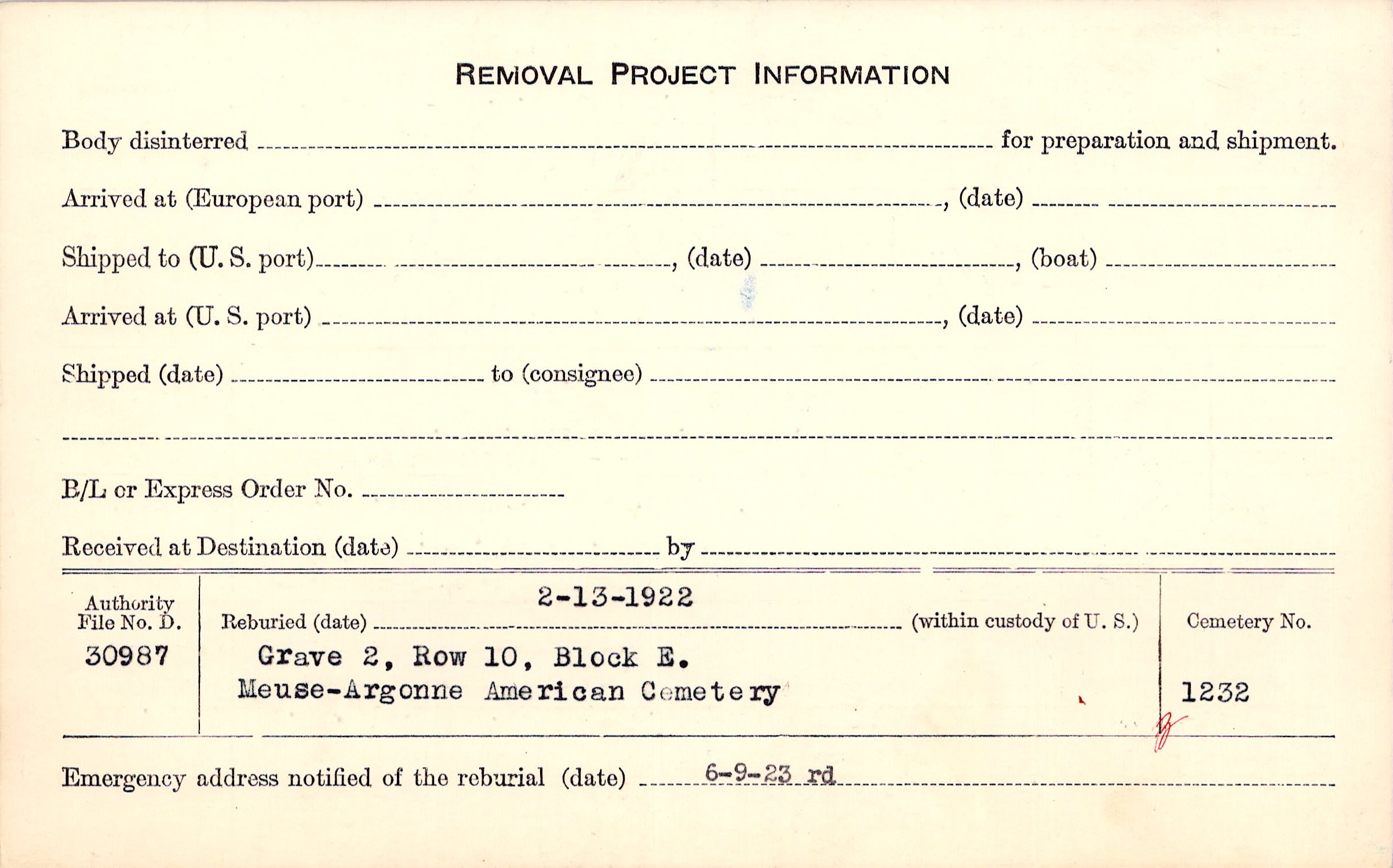 | Permanent Burial in Foreign Cemetery |