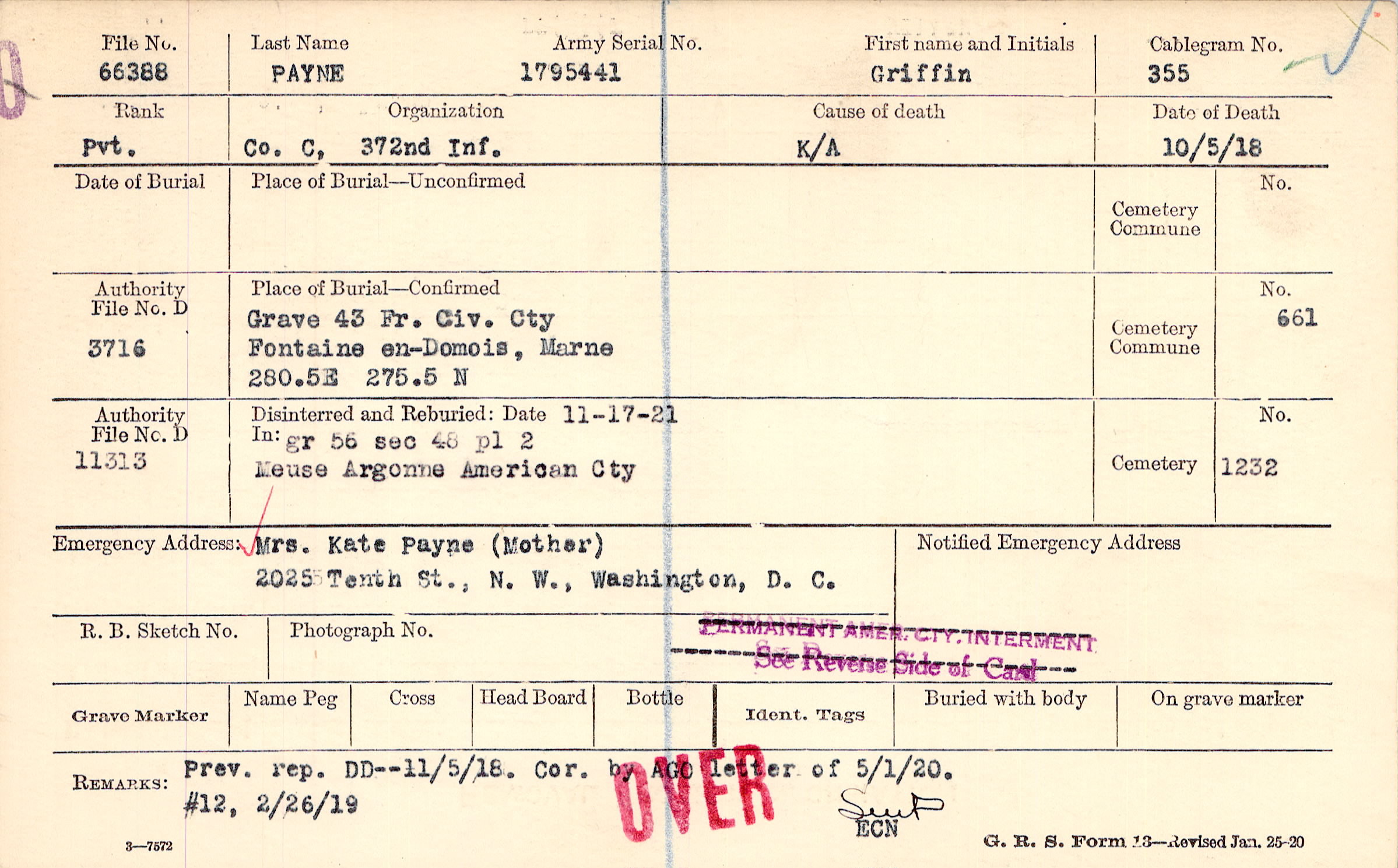 Mrs. Kate Payne (Mother), 2025 Tenth St., N. W., Washington, D. C.