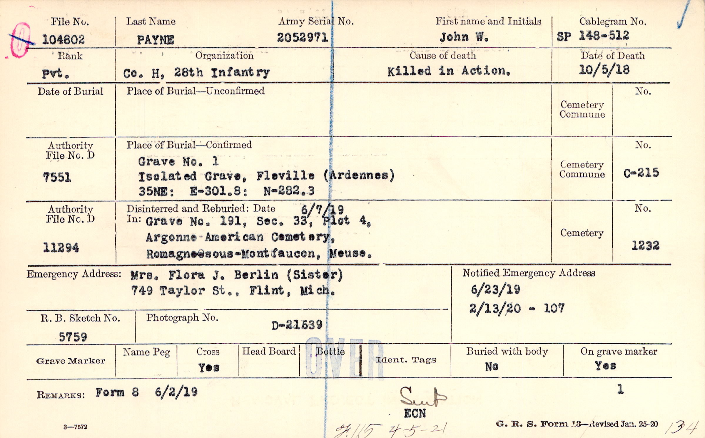 6/23/1919, Form 107: 2/13/1920