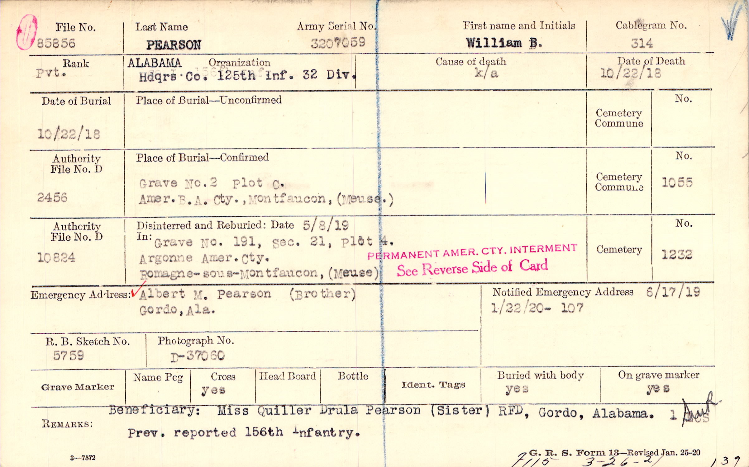Grave 2, Plot C., Amer. B/A Cty., Montfaucon, Meuse.