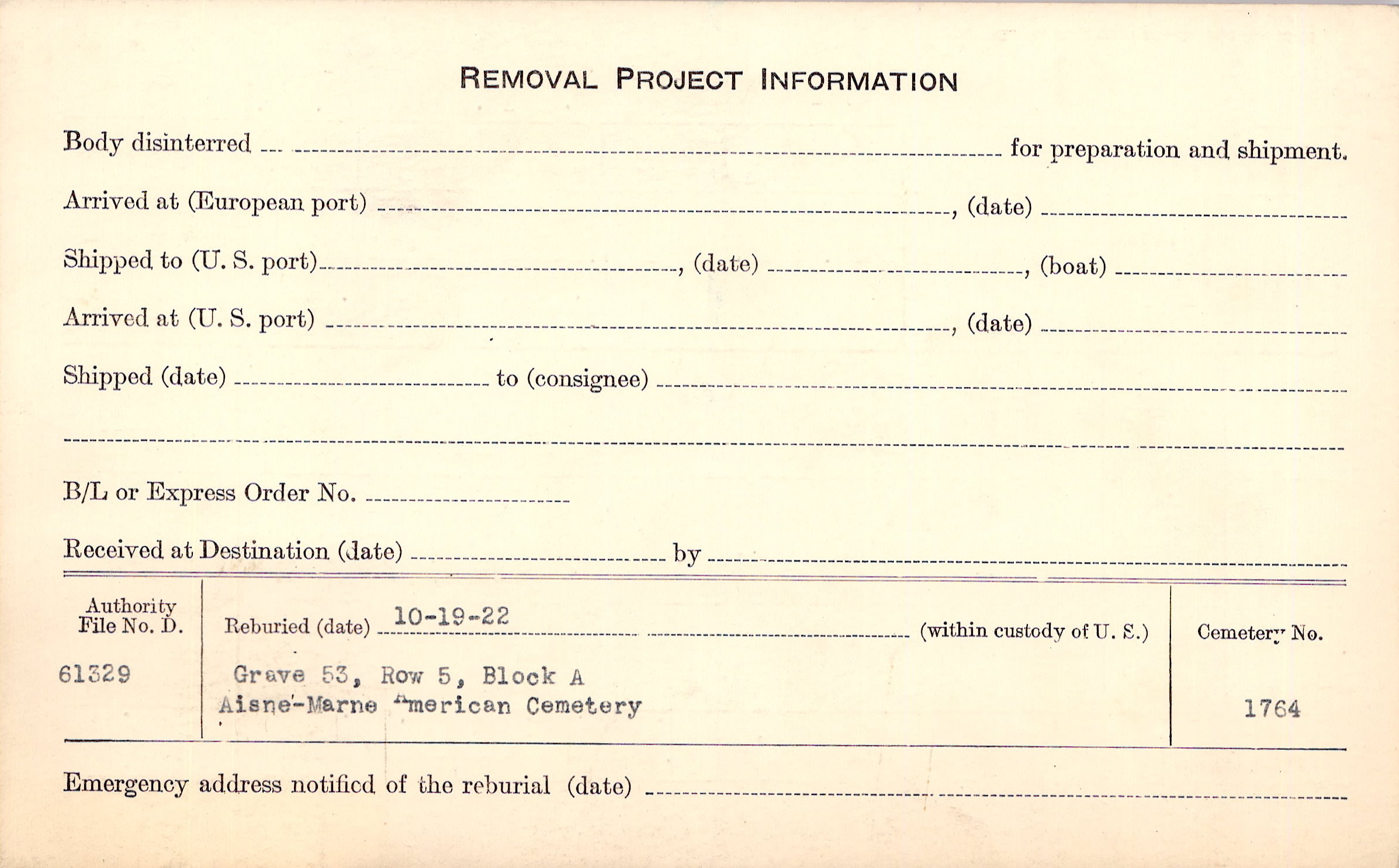 | Permanent Burial in Foreign Cemetery |