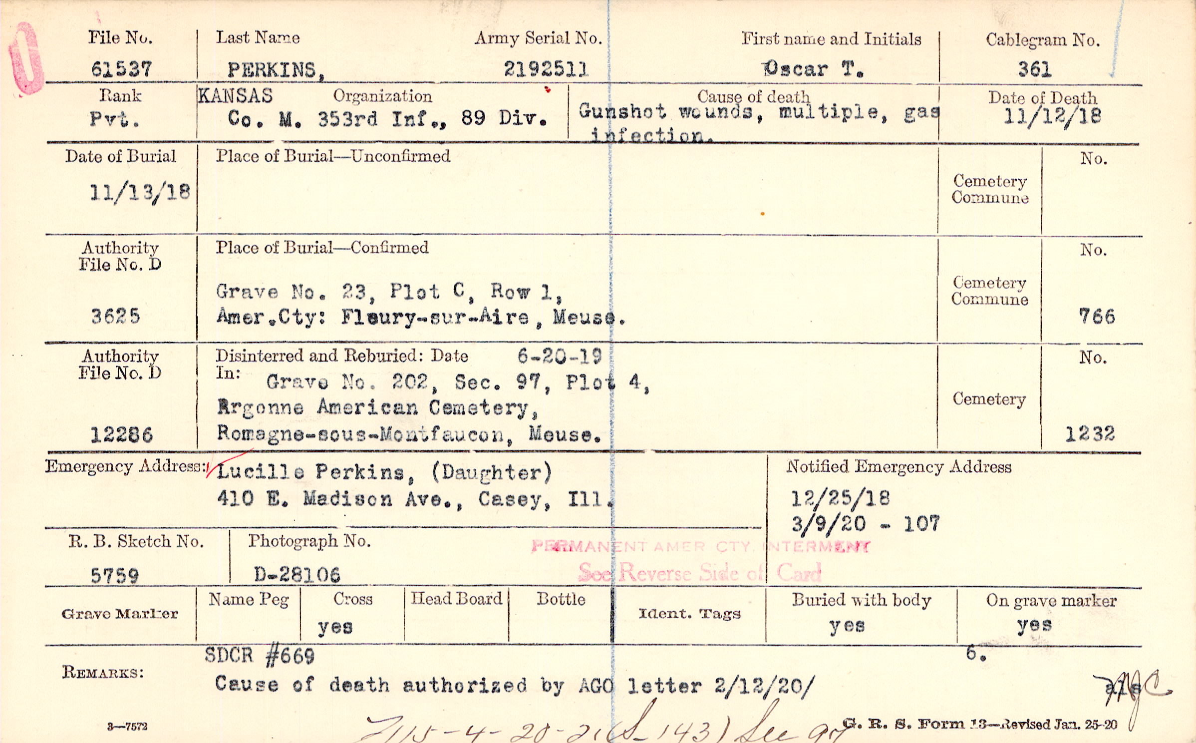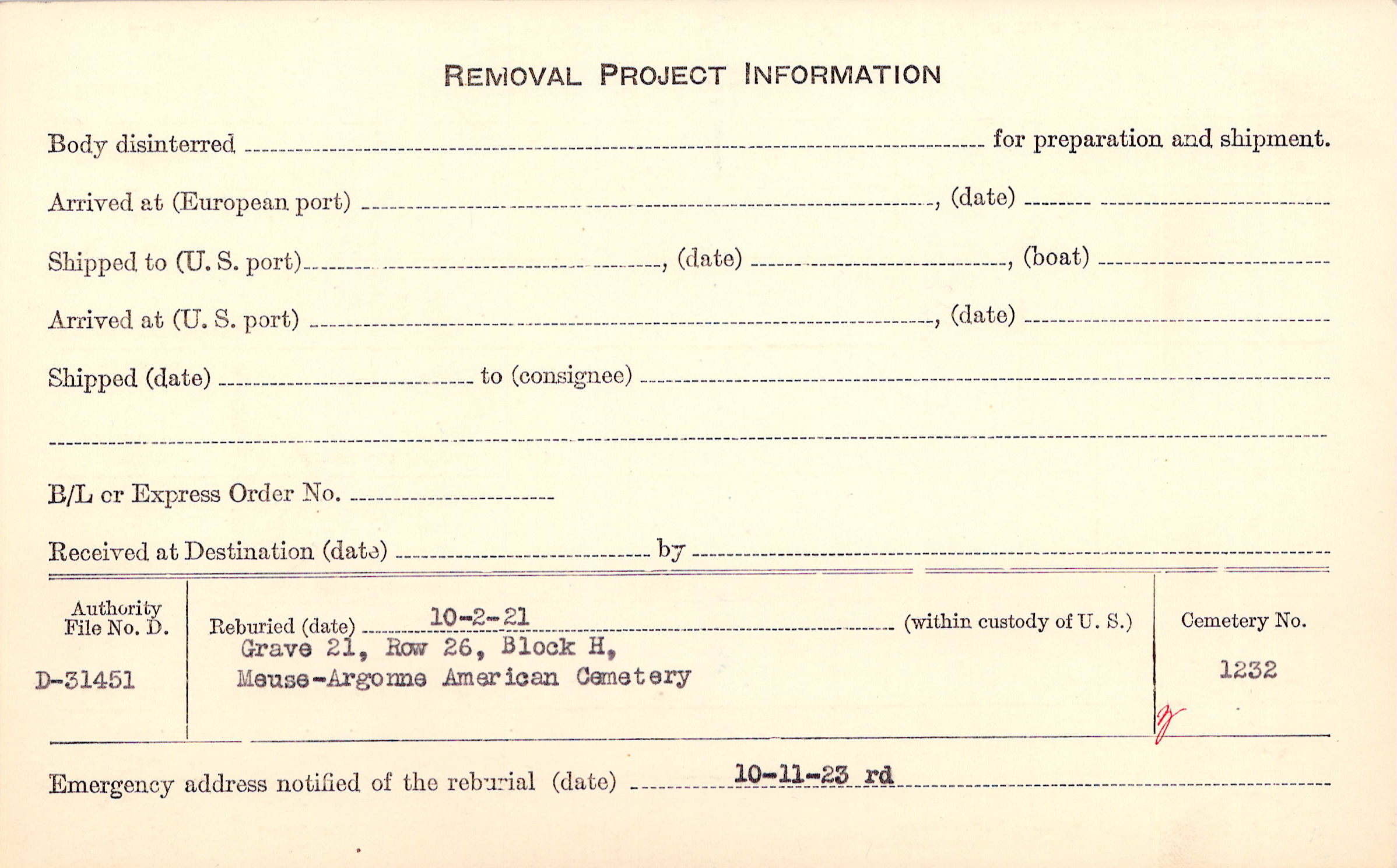 Grave 202, Section 97, Plot 4, Argonne American Cemetery, Romagne-sous-Montfaucon, Meuse