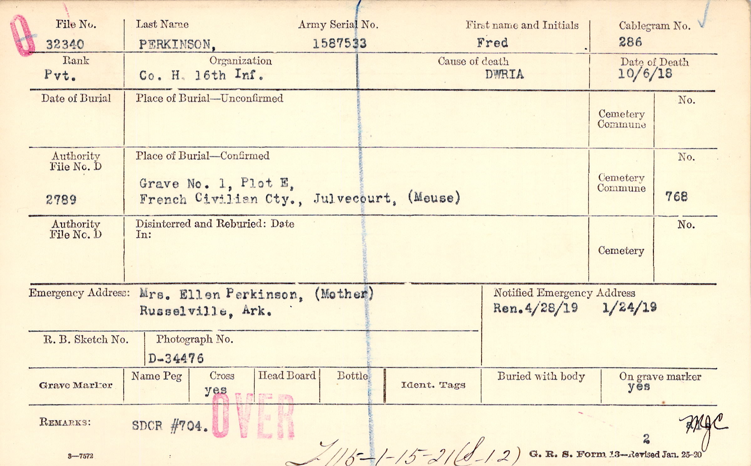 Grave 1, Plot E,French Civilian Cty., Julvecourt, (Meuse)