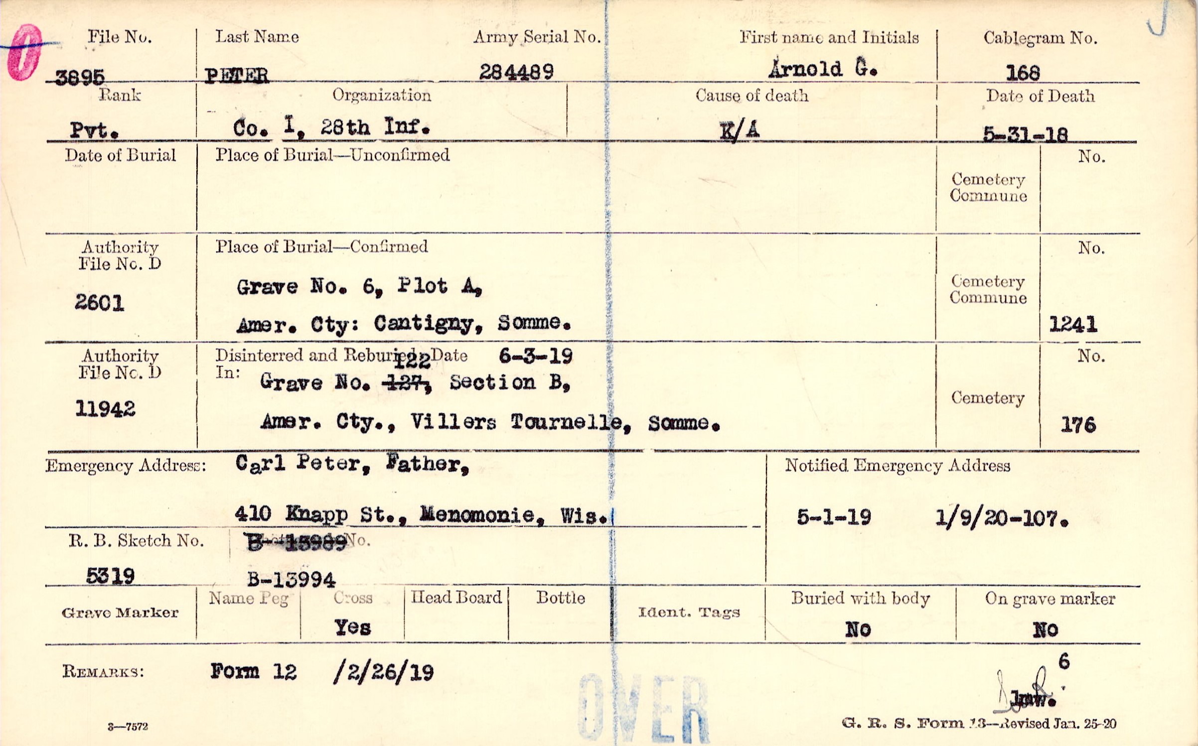 Carl Peter, Father,, 410 Knapp St., Menomonie, Wis.
