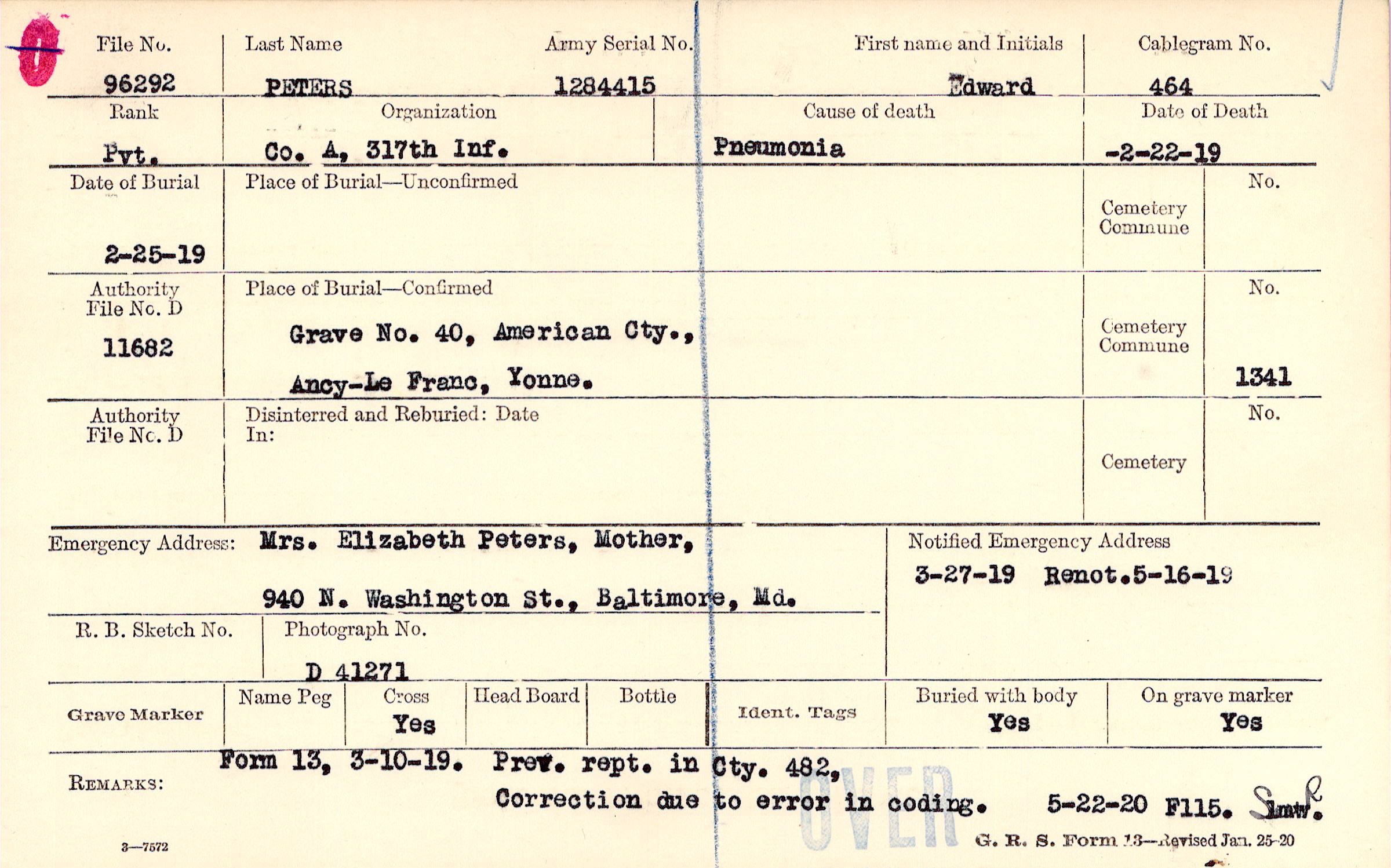 Grave 40, American Cty., Ancy-Le-Franc, Yonne.
