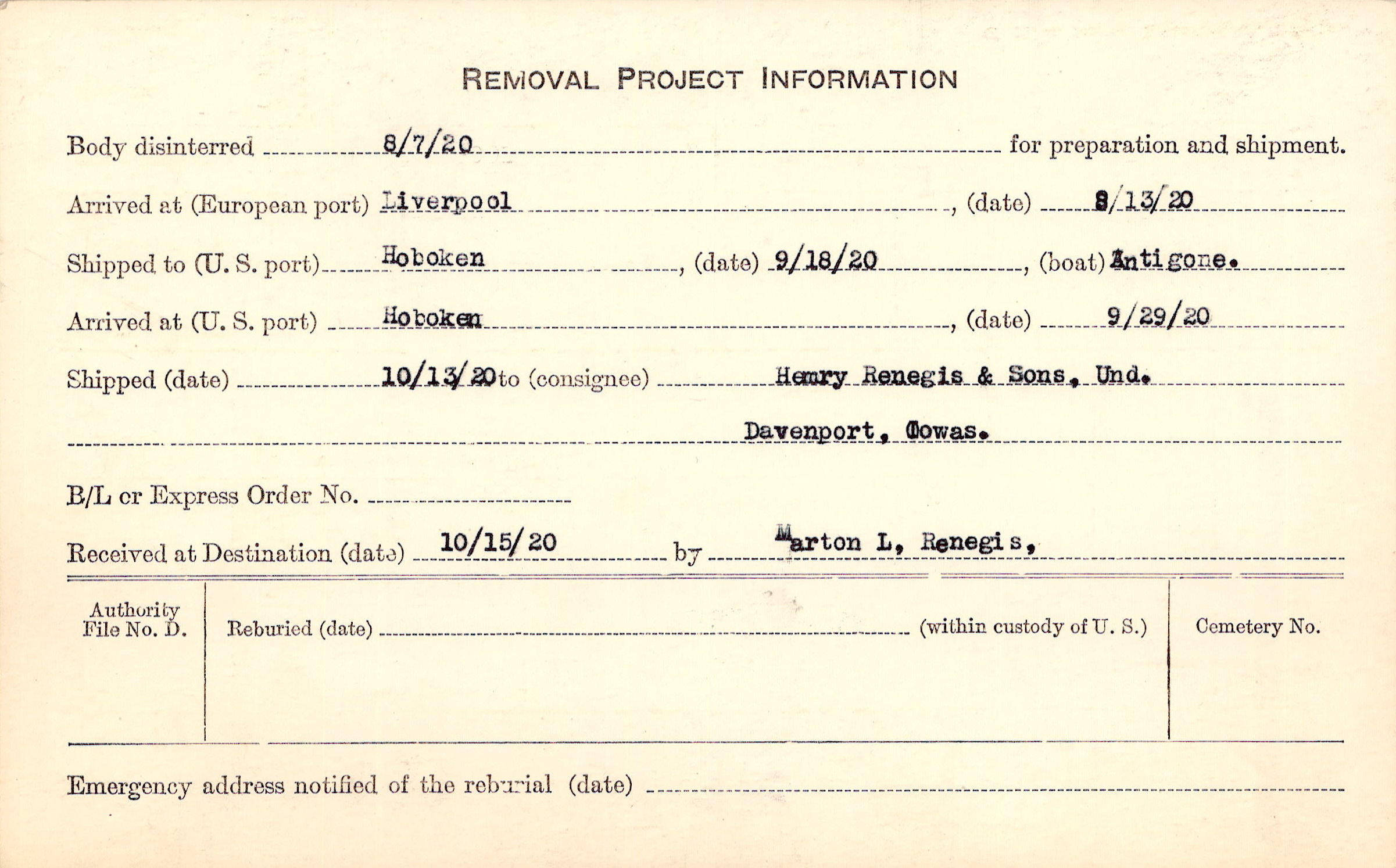 to Henry Renegis & Sons, Und., Davenport, Iowas.