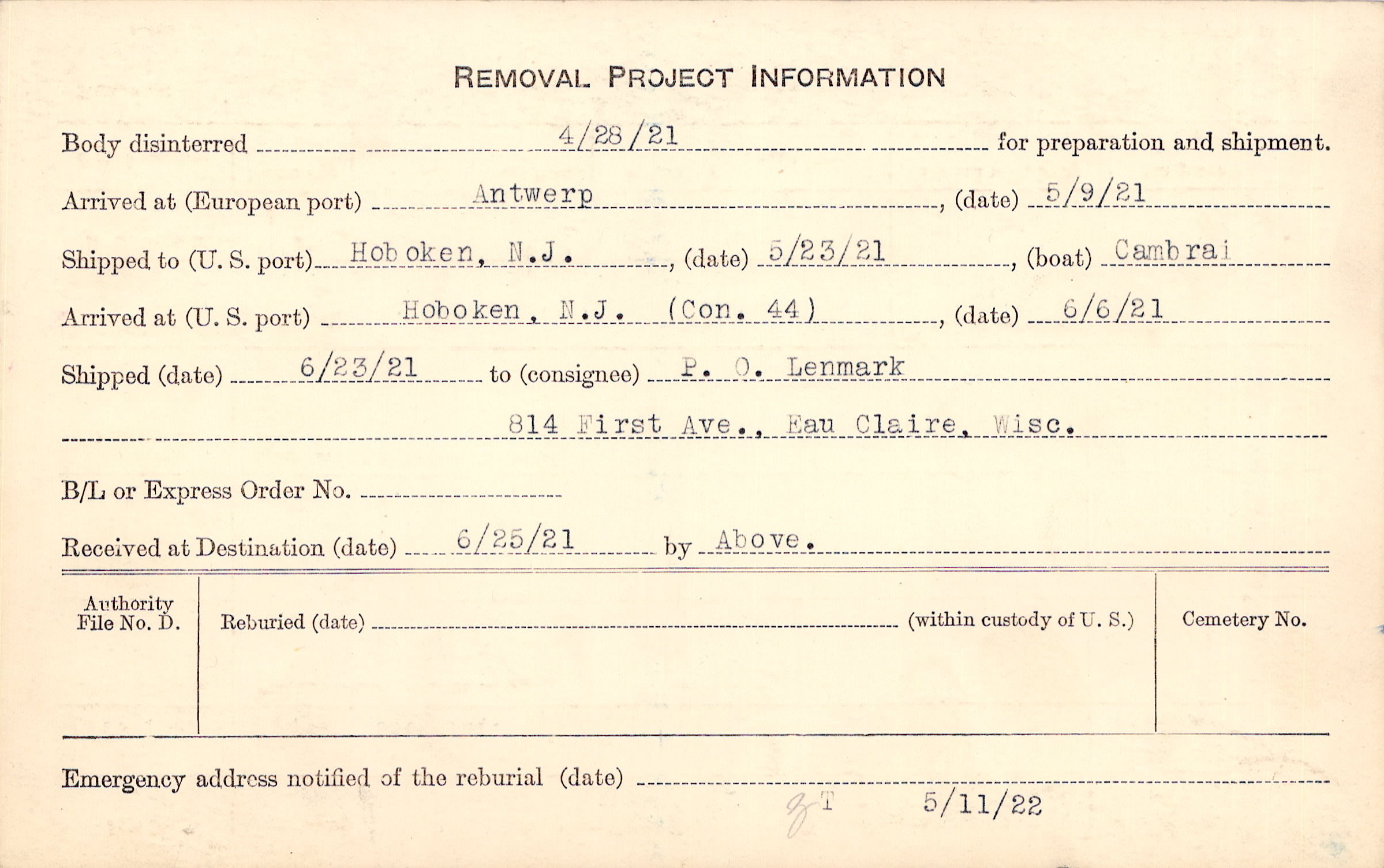 to P.O. Lenmark, 814 First Ave., Eau Claire, Wisc.