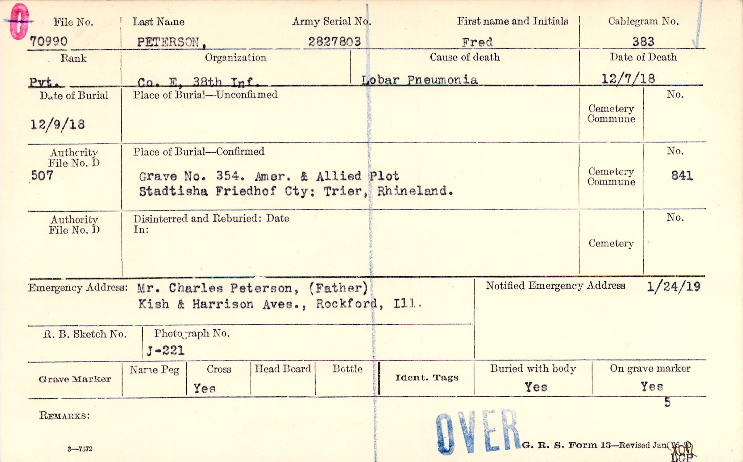 Grave 354, Amer. & Allied Plot, Stadtisha Friedhof Cty., Trier, Rhineland.