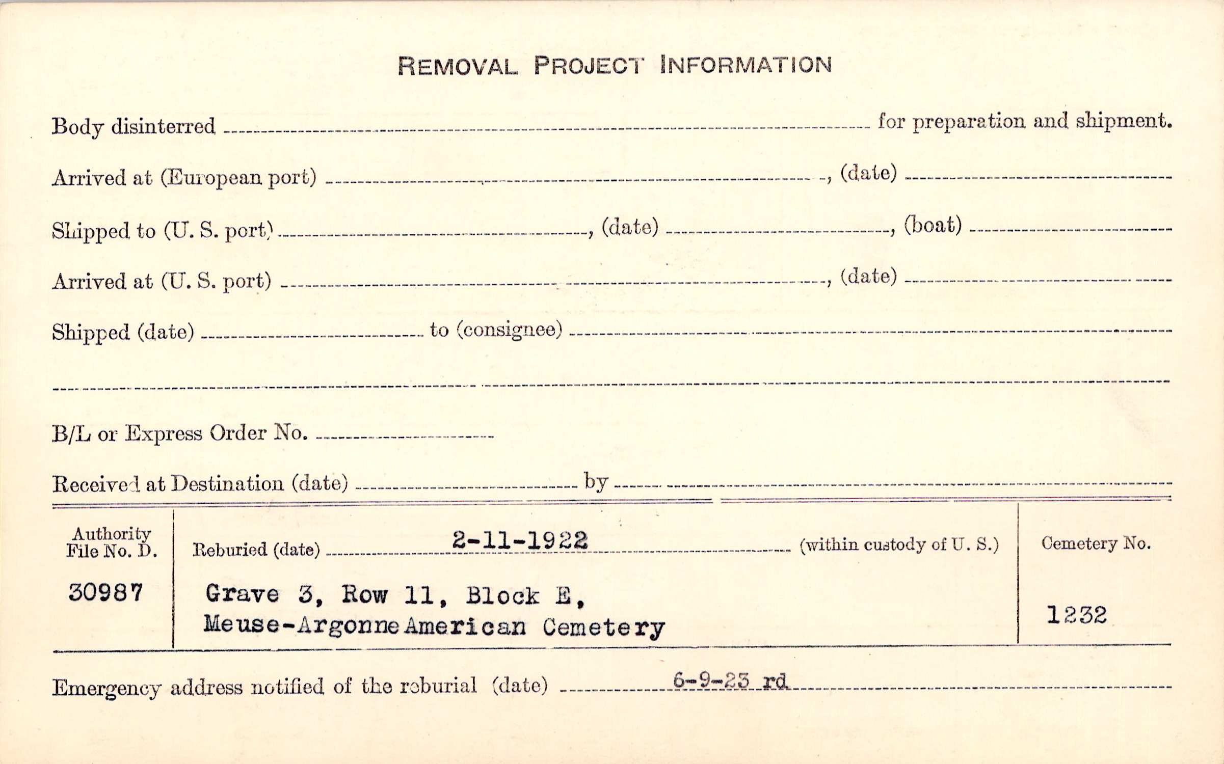 Form 107: 1/22/1920, RTD 5/13/1919, 6/2/1919