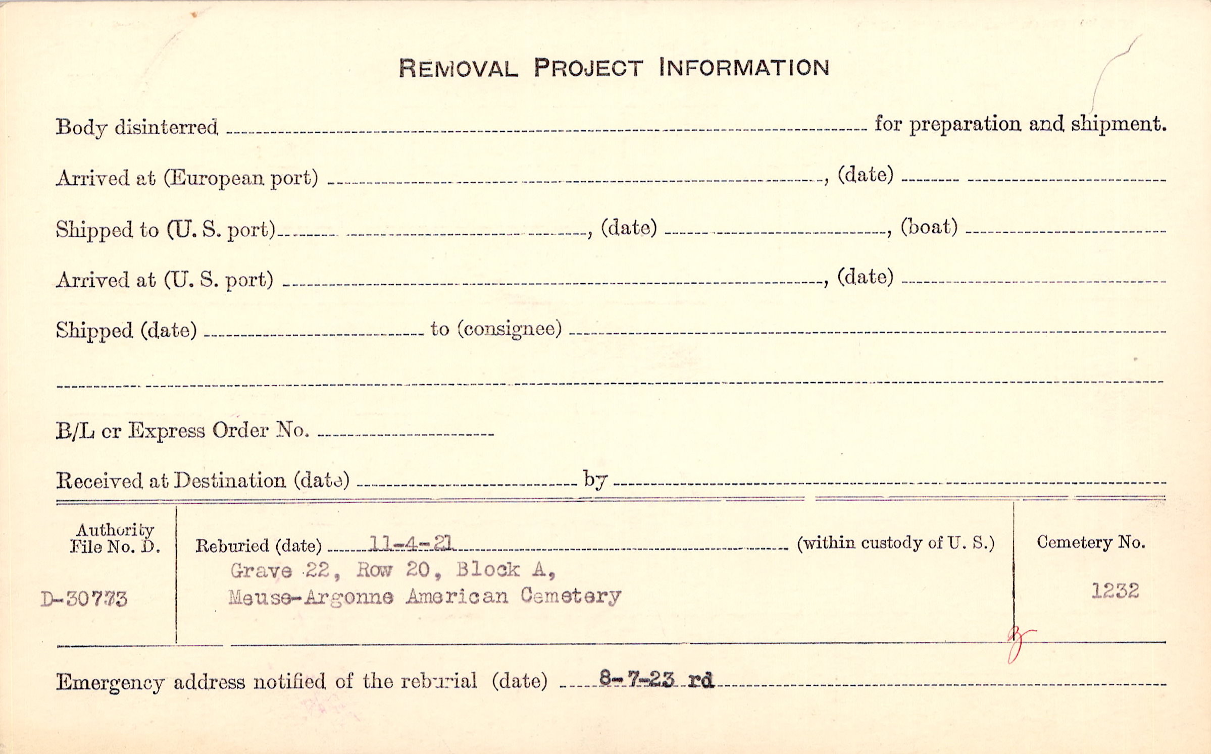 | Permanent Burial in Foreign Cemetery |