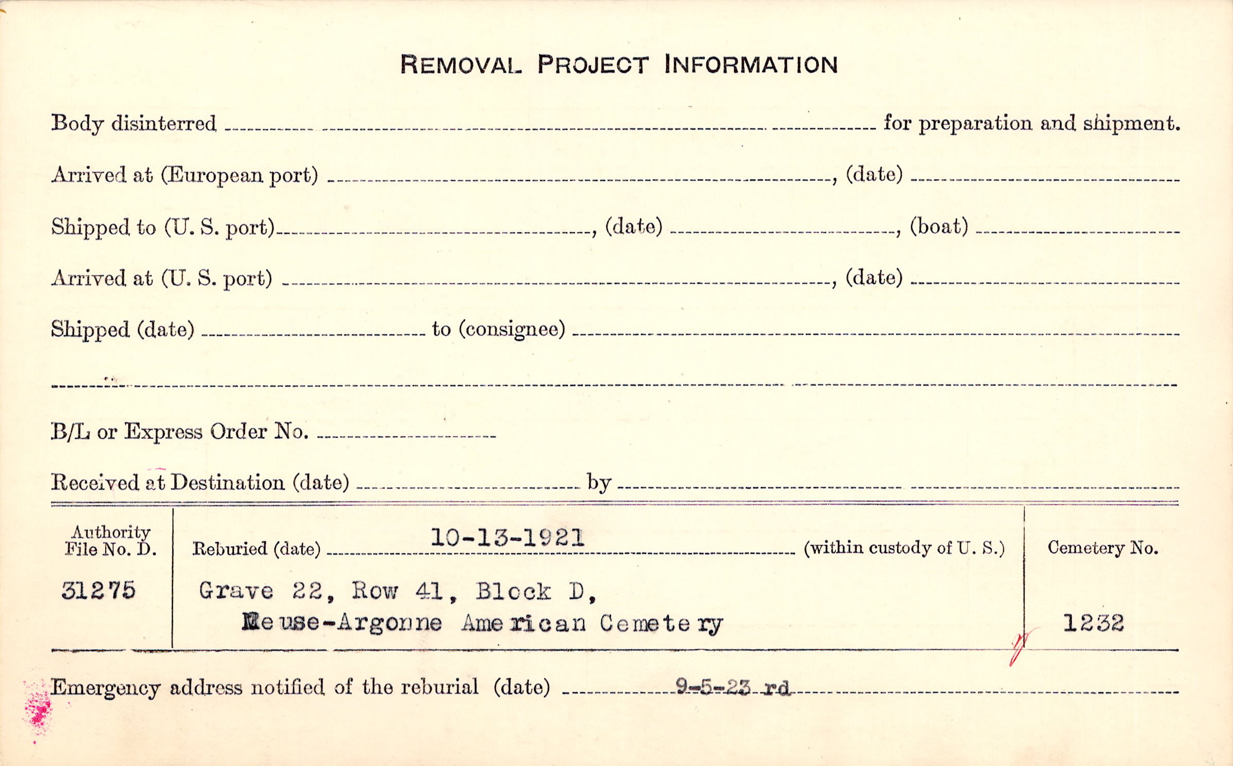 | Reburied (date): |
