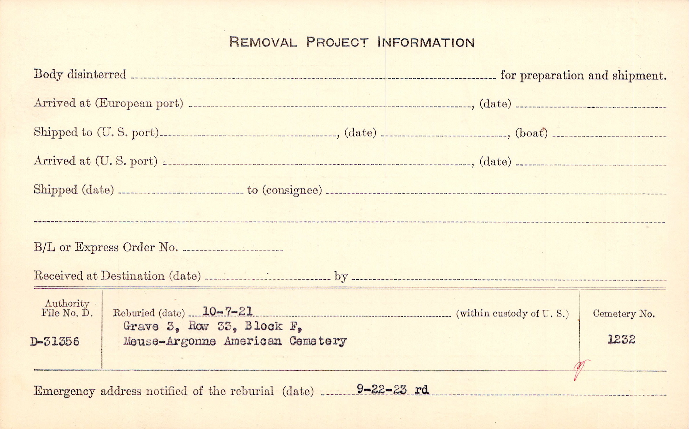 Grave 55, Section 82, Plot 2, Argonne American Cemetery, Romagne-sous-Montfaucon, Meuse