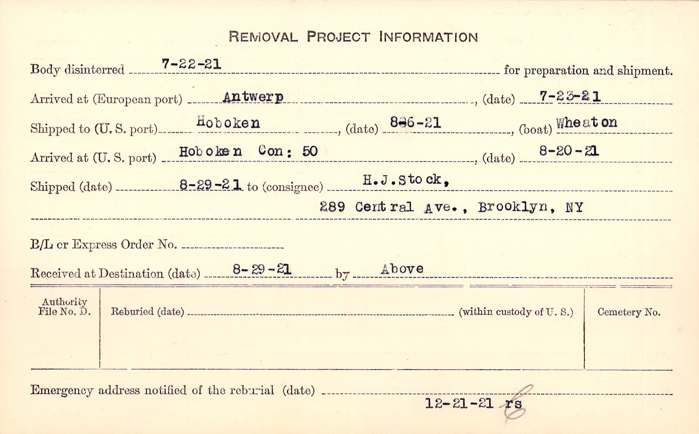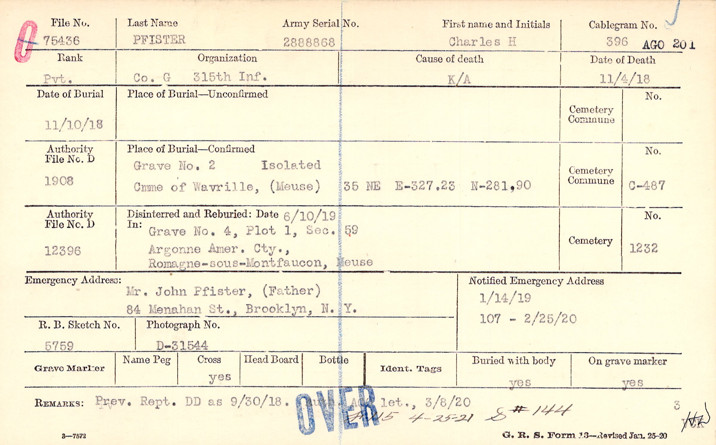Mr. John Pfister, (Father), 84 Menahan St., Brooklyn, N.Y.