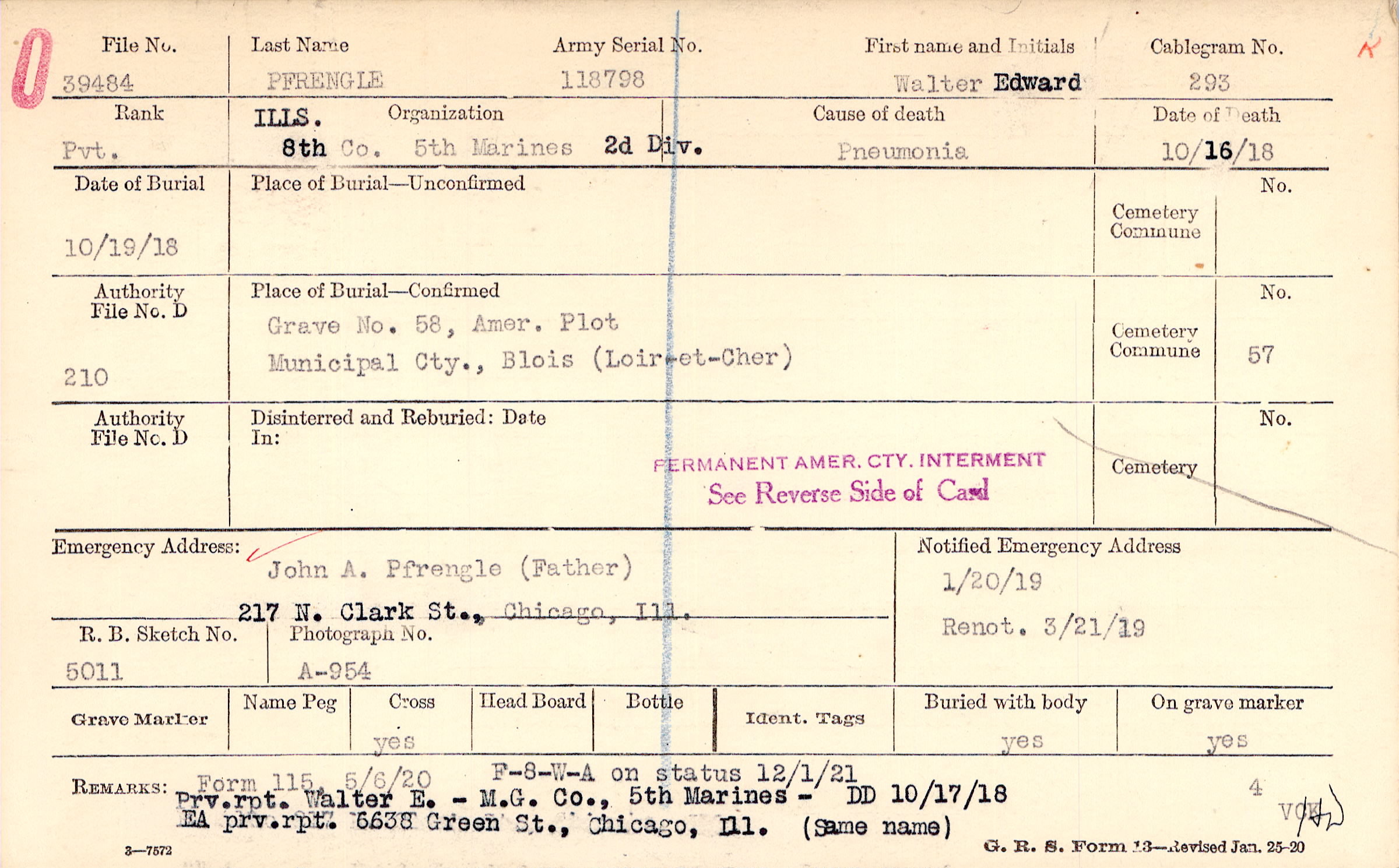 John A. Pfrengle (Father), 217 N. Clark St., Chicago, Ill.