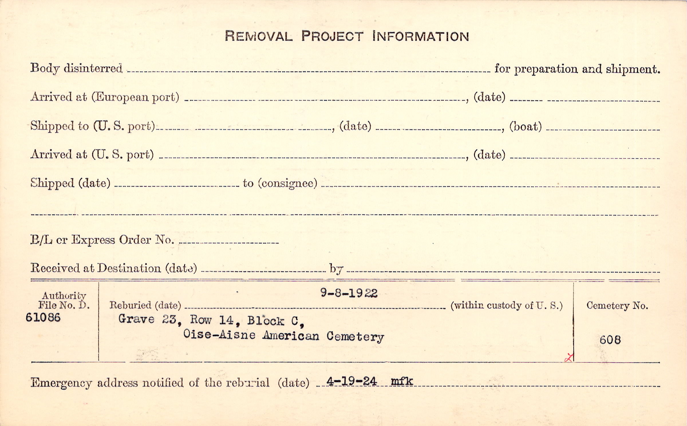 Grave 58, Amer. Plot, Municipal Cty., Blois, Loir-et-Cher