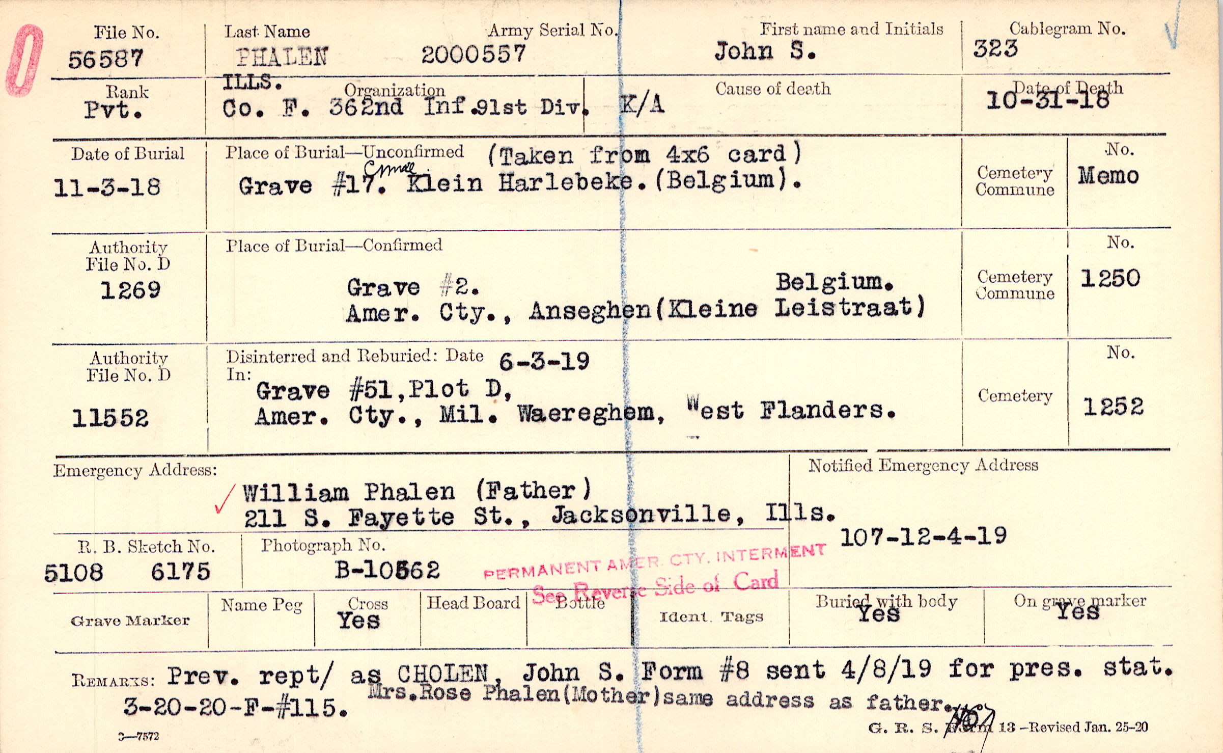 William Phalen (Father), 211 S. Fayette St., Jacksonville, Ills.