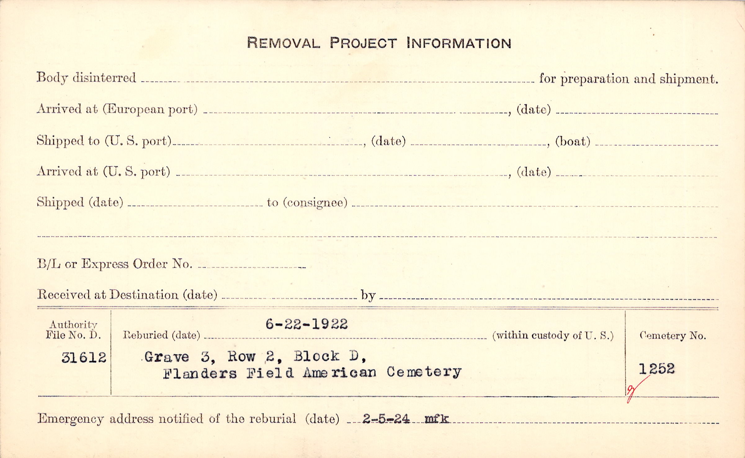 Grave 51, Plot D, American Cemetery, Waereghem, West Flanders