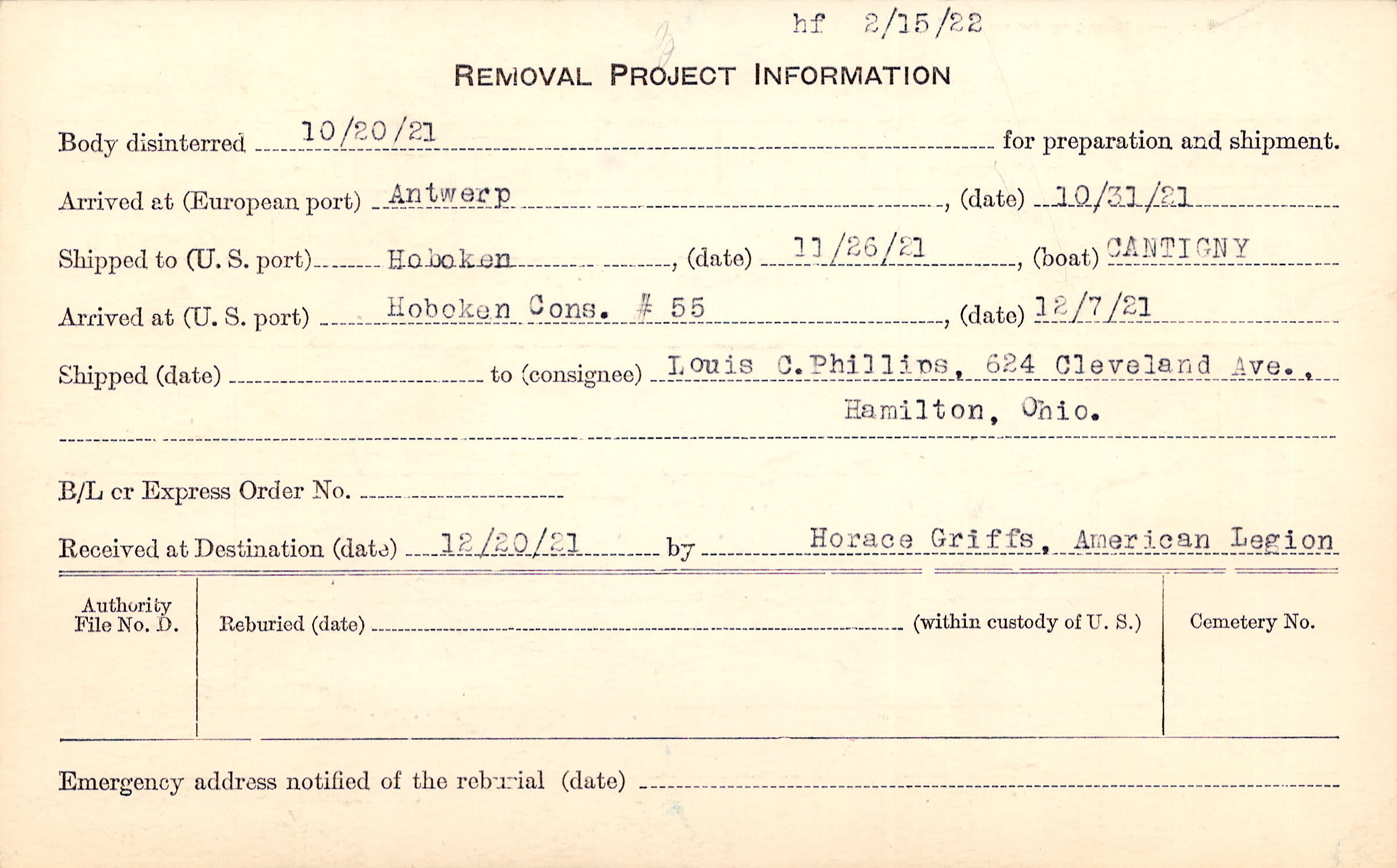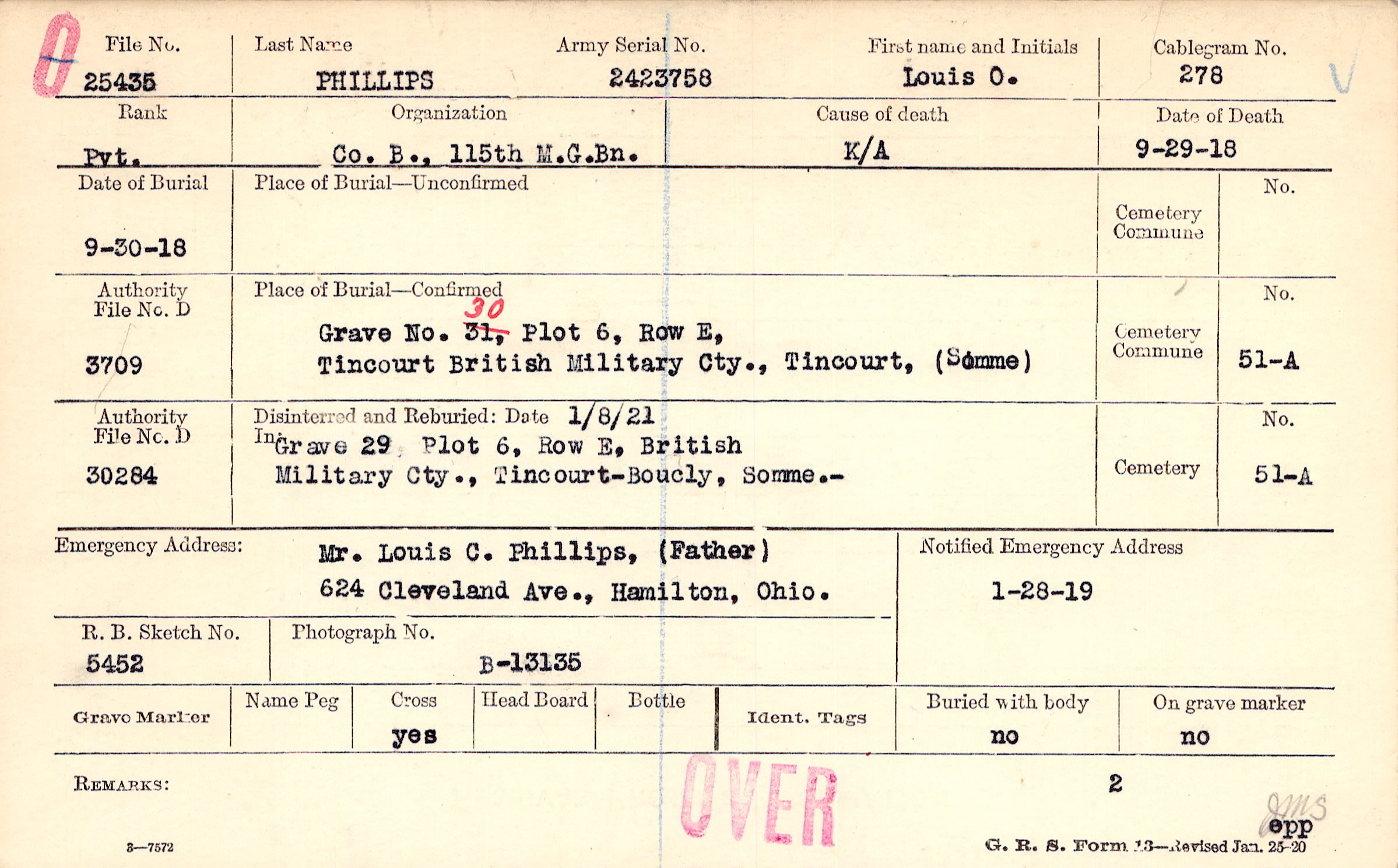 Mr. Louis C. Phillips, (Father), 624 Cleveland Ave., Hamilton, Ohio.