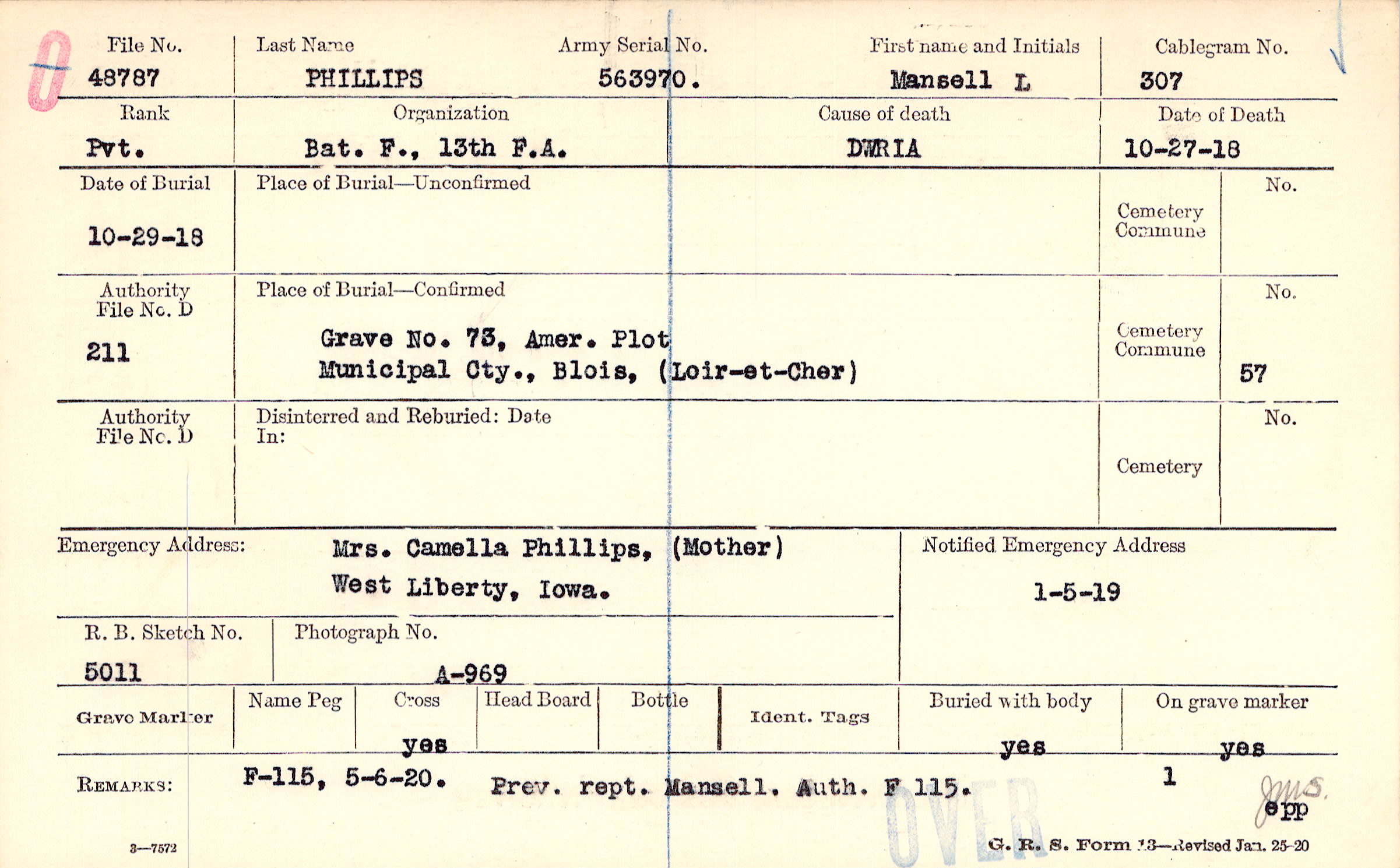 Grave 73, Amer. Plot; Municipal Cty., Blois (Loir-et-Cher)