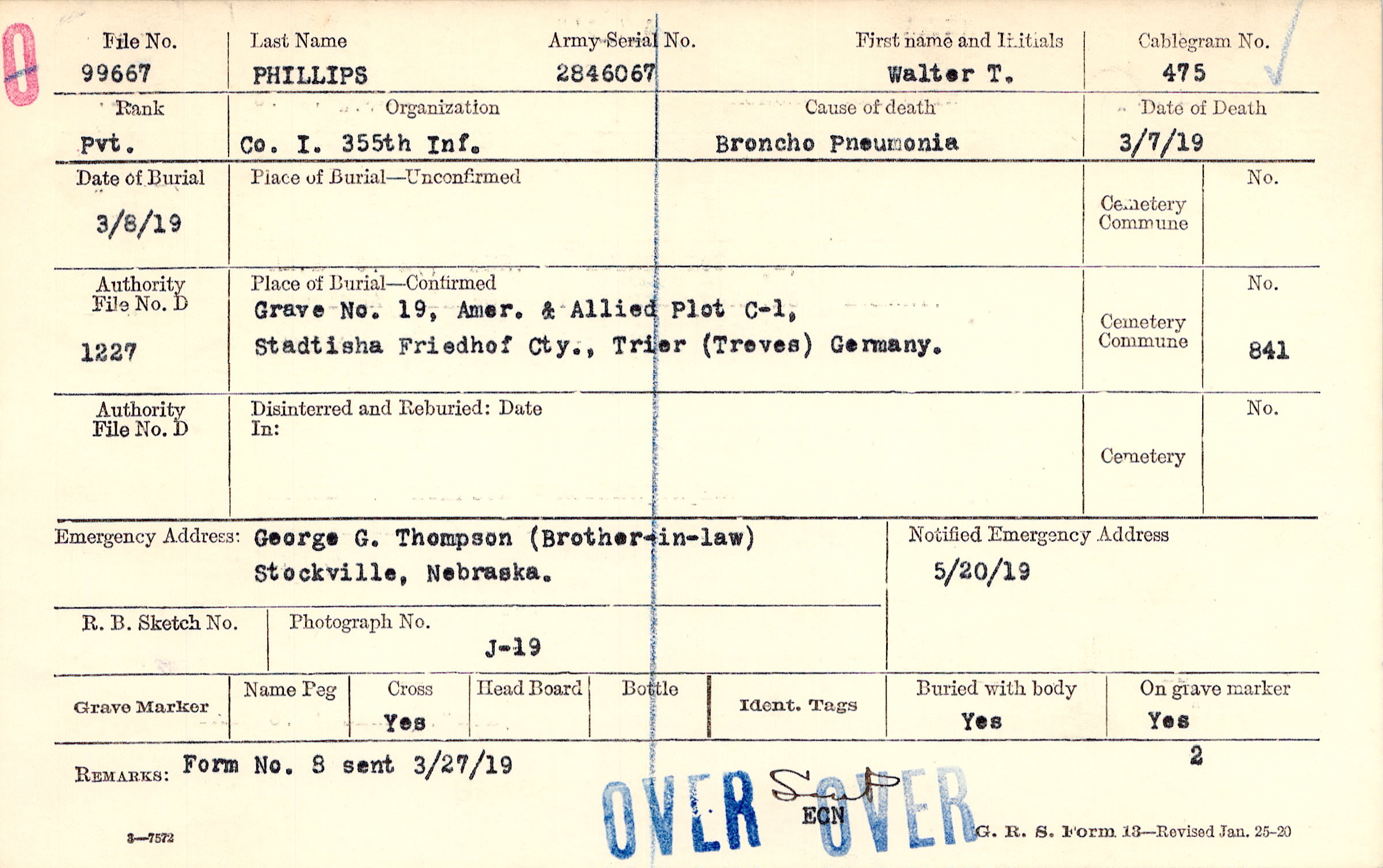 Grave 19, Amer. & Allied Plot C-1, Stadtisha Friedhof Cty., Trier, Treves, Germany