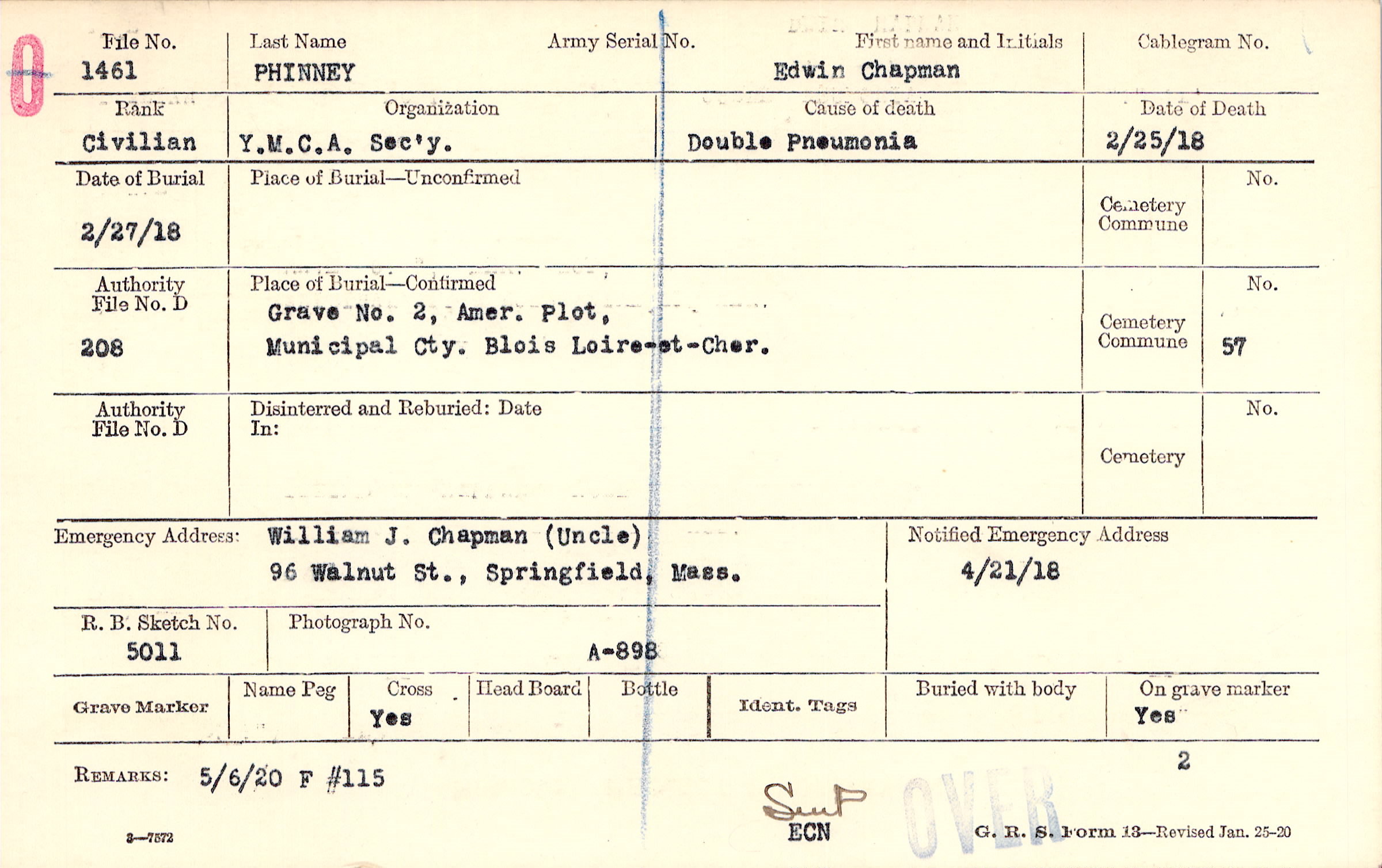 Grave 2, Amer. Plot, Municipal Cty., Blois, Loire-et-Cher.