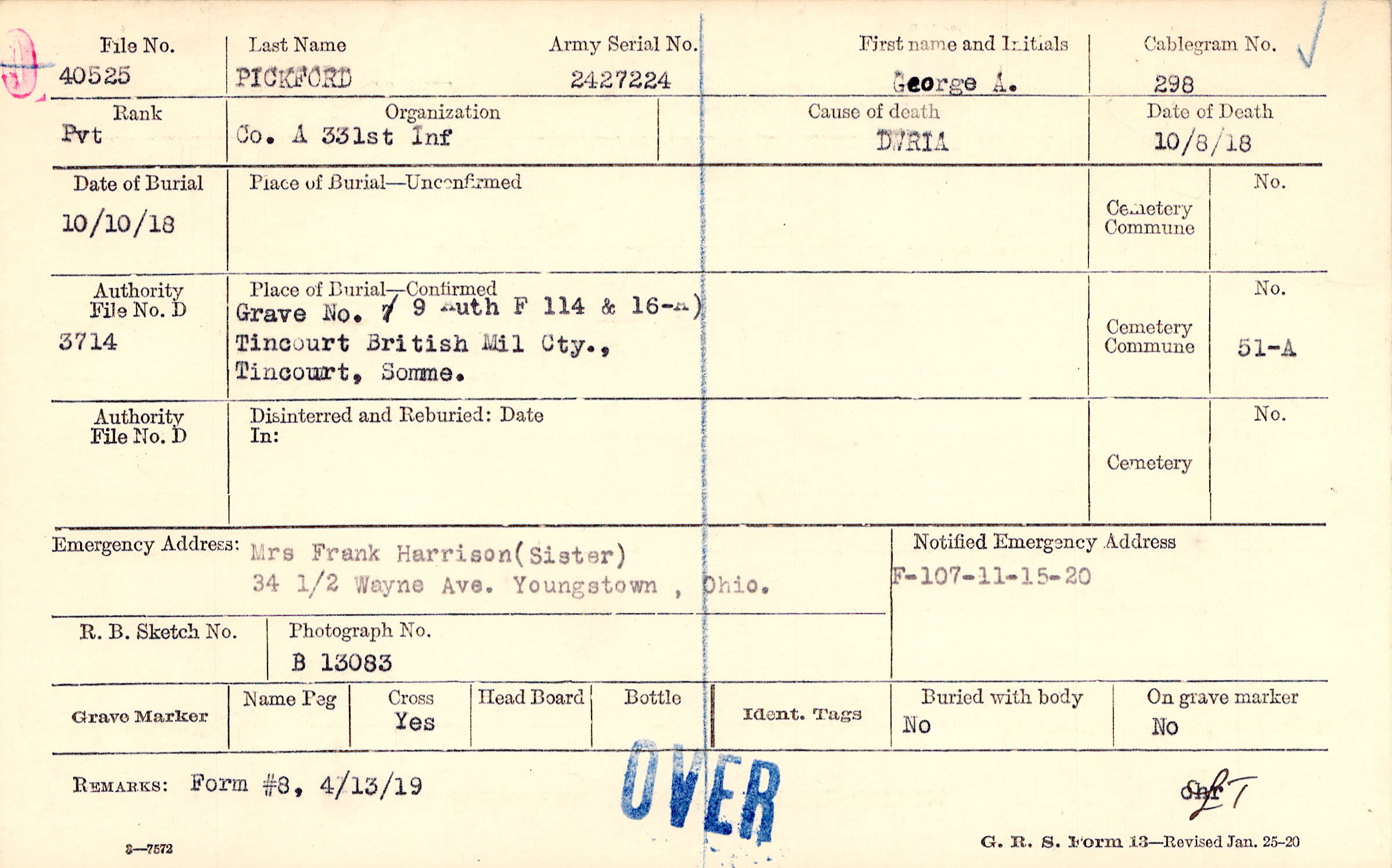 Mrs Frank Harrison (Sister), 34 1/2 Wayne Ave. Youngstown, Ohio.
