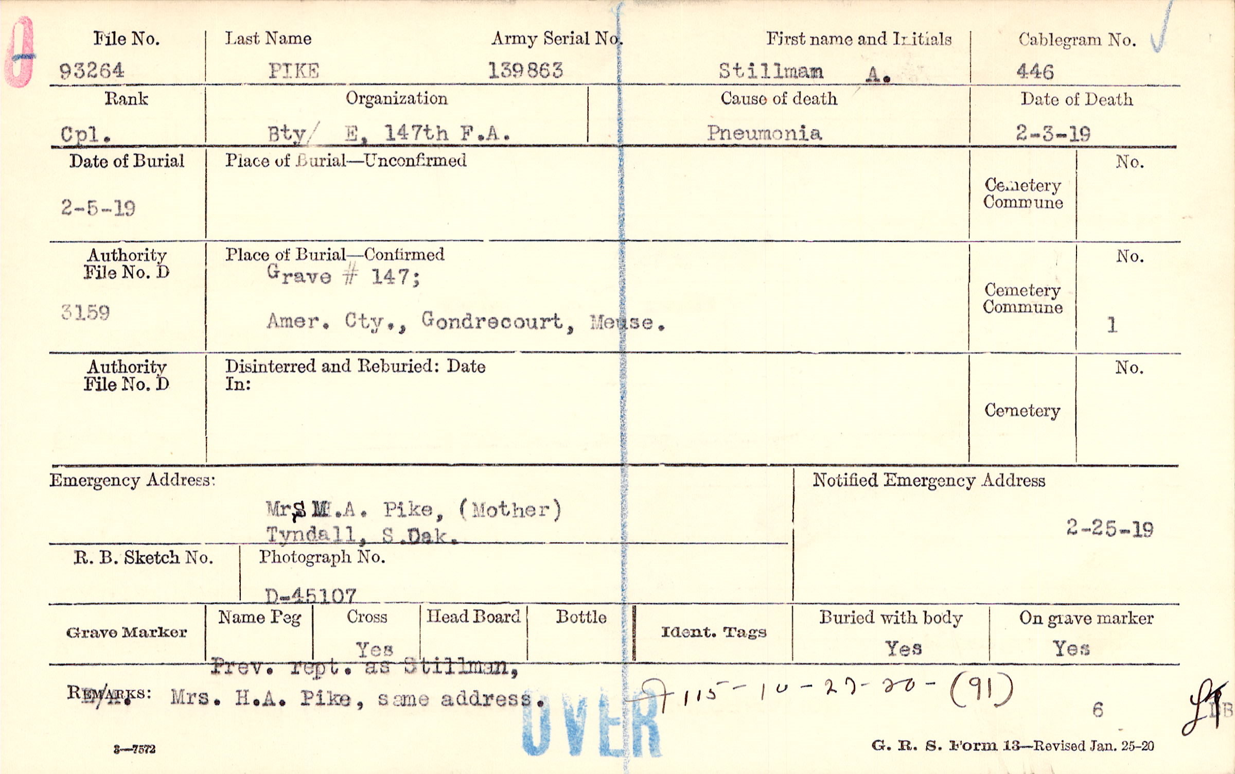 Grave #147, Amer. Cty., Gondrecourt, Meuse