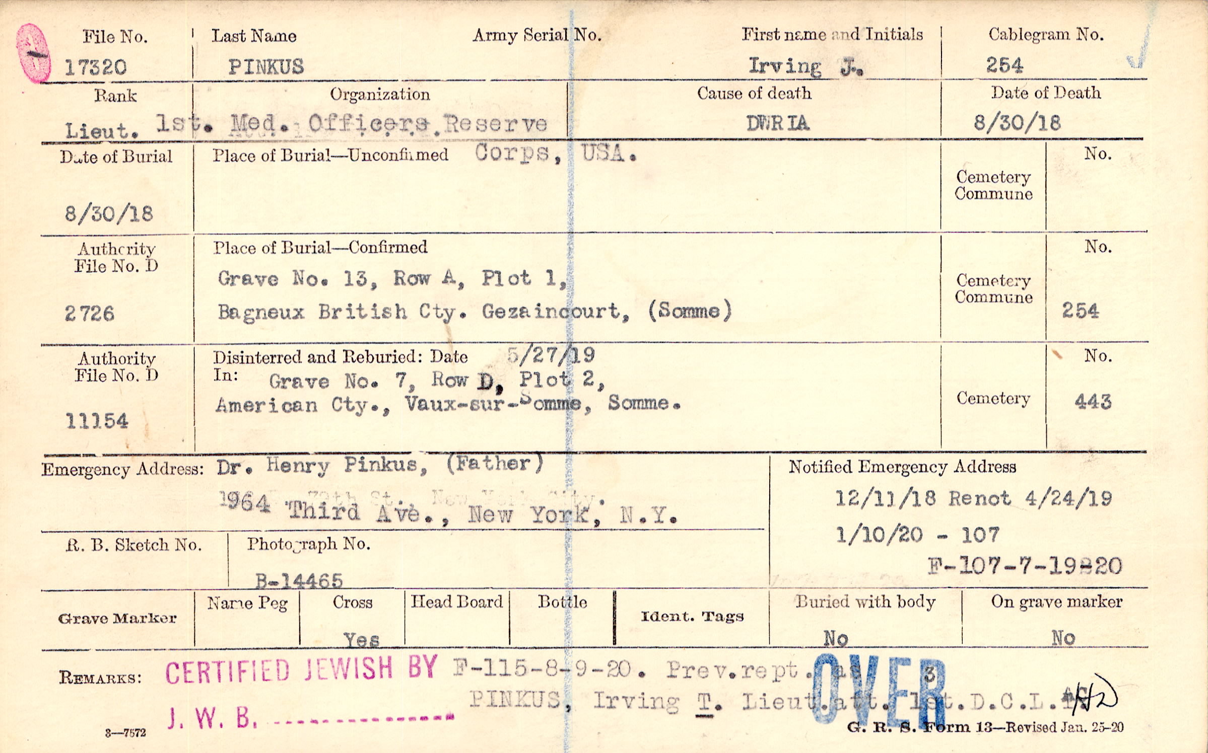 Dr. Henry Pinkus, (Father), 964 Third Ave., New York, N.Y.