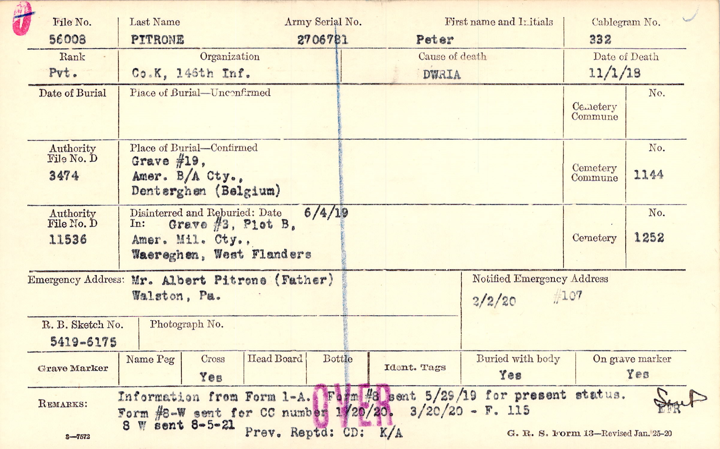 Grave #19, Amer. B/A Cty., Denterghen, Belgium