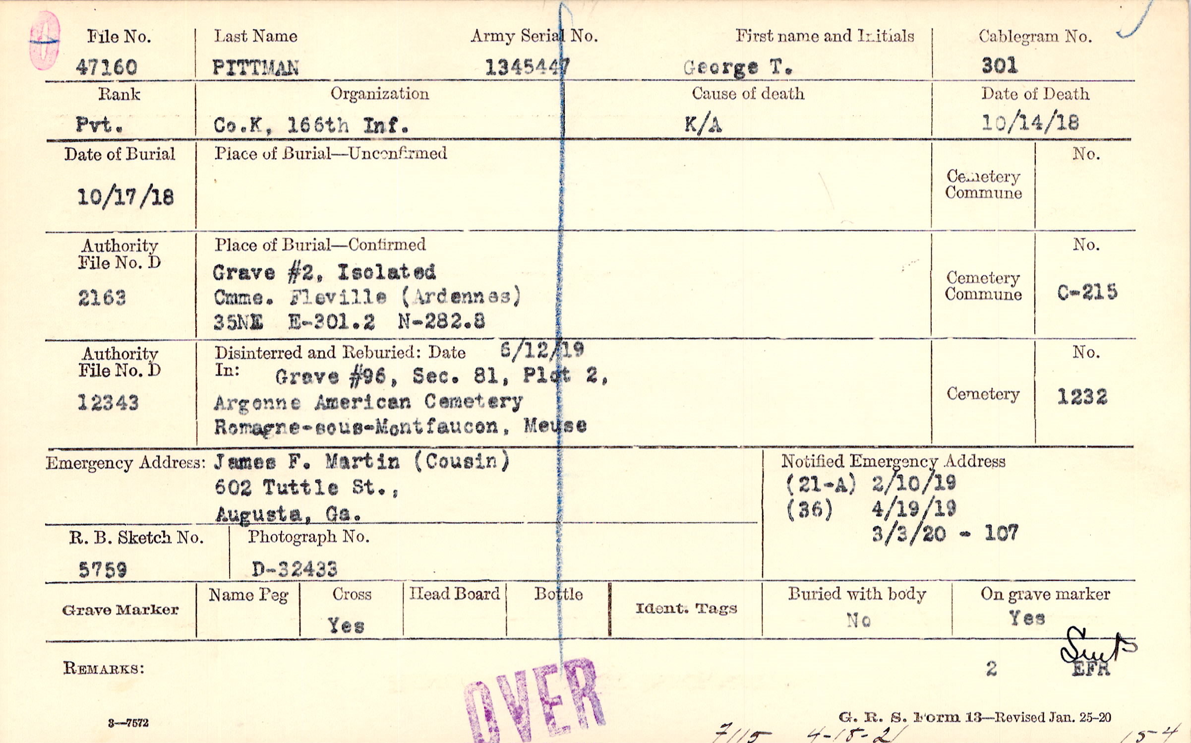 James F. Martin (Cousin), 602 Tuttle St.,, Augusta, Ga.