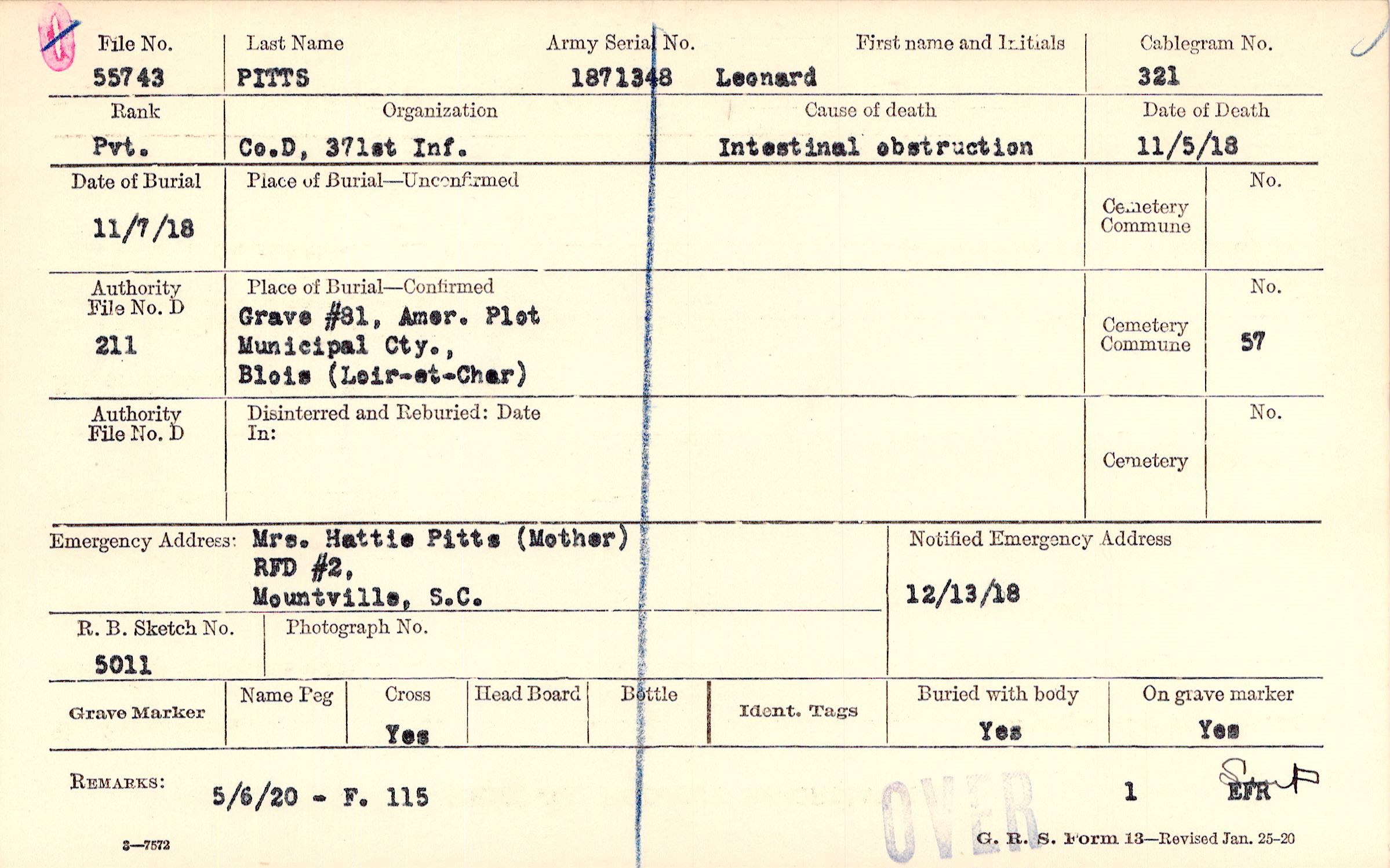 Grave #381, Amer. Plot, Municipal Cty., Blois, Loir-et-Cher