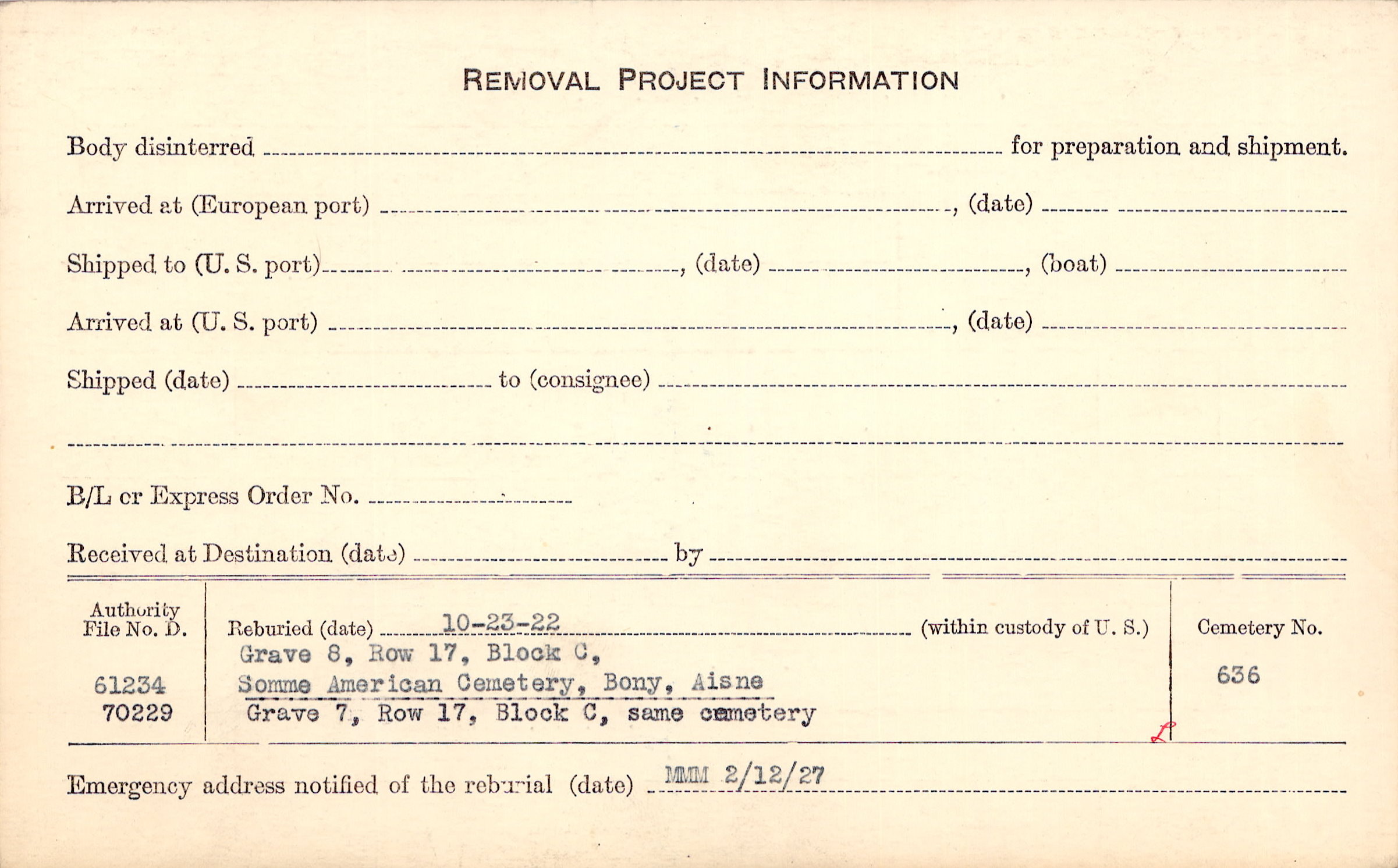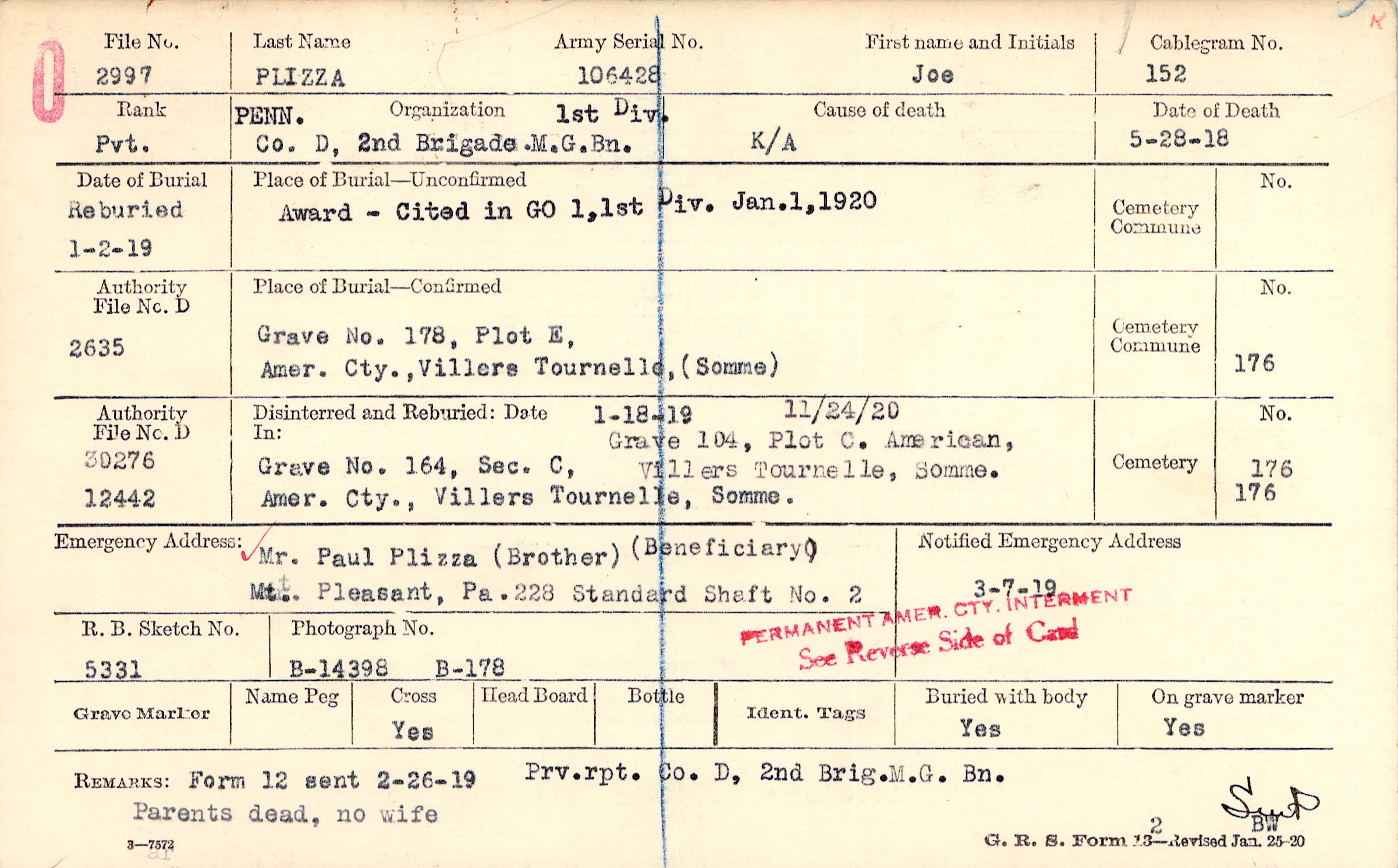 Prv.rpt. Co. D, 2nd Brig.M.G. Bn. Parents dead, no wife, Form 12 sent 2-26-19