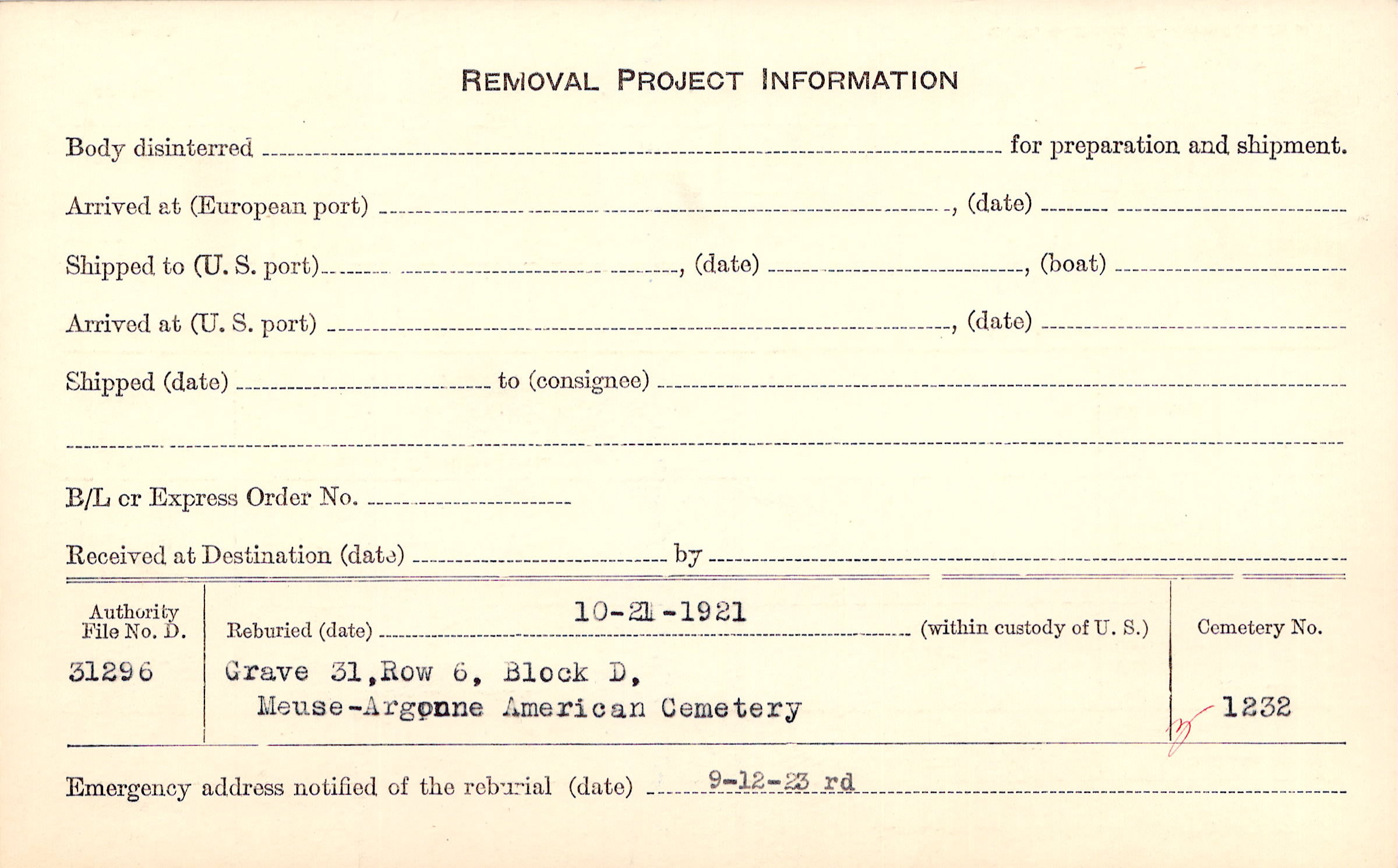 Grave 132, Amer. B/A Cty., Consenvoye, Meuse