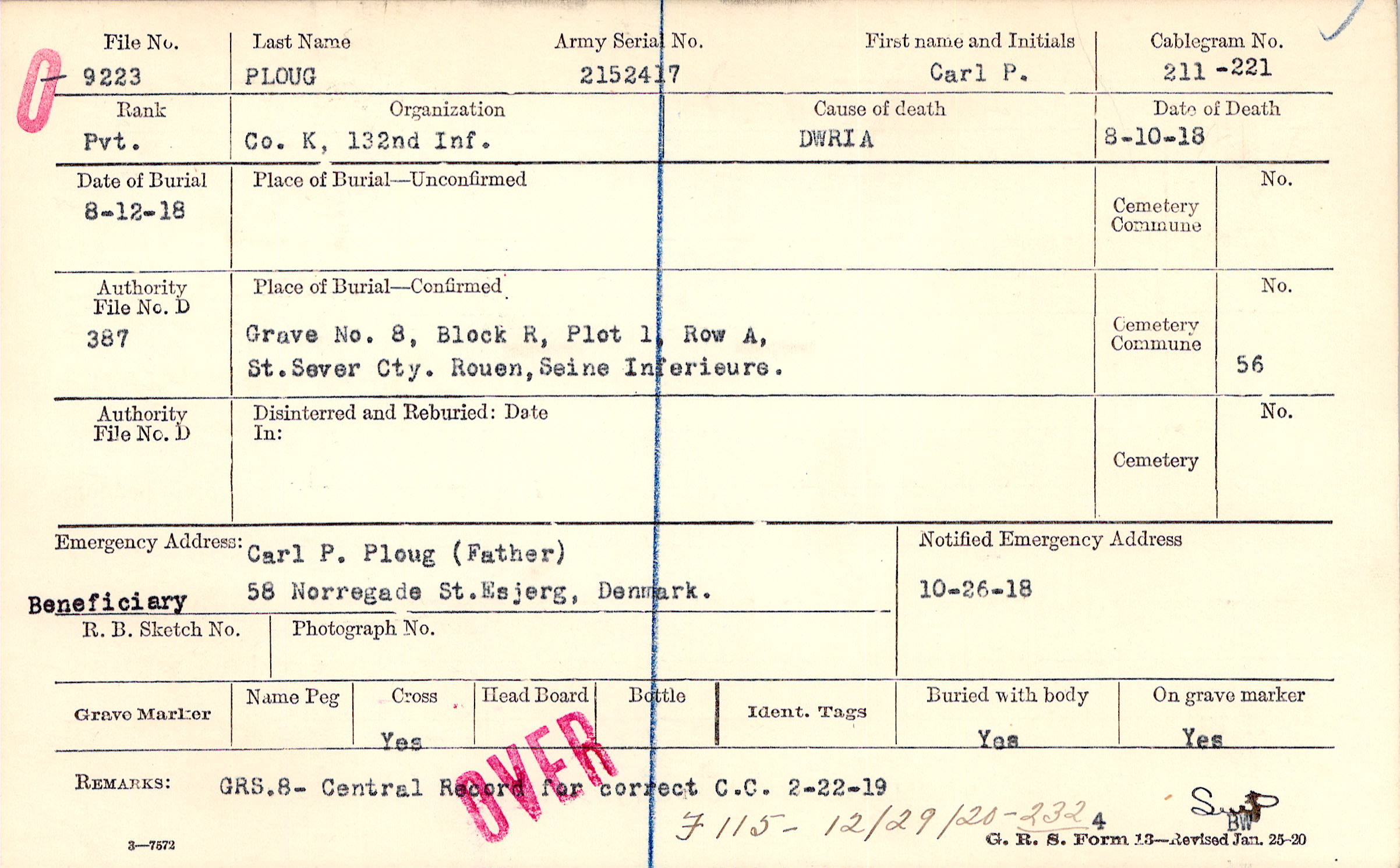 GRS.8- Central Record for correct C.C. 2-22-19, F 115 - 12/29/20 - 232