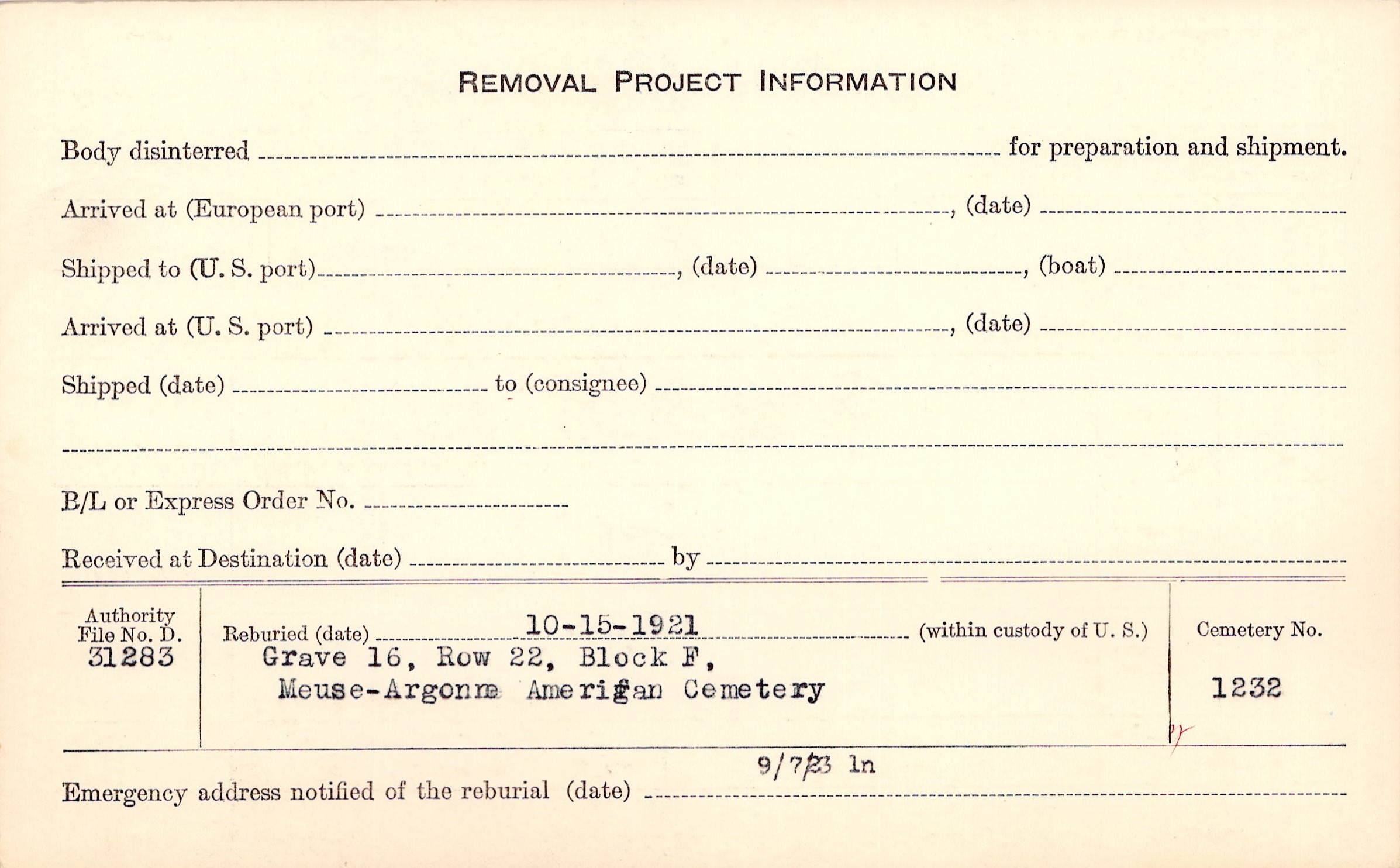 Grave #3, Amer. B/A Cty. Liny Devant Dun, Meuse