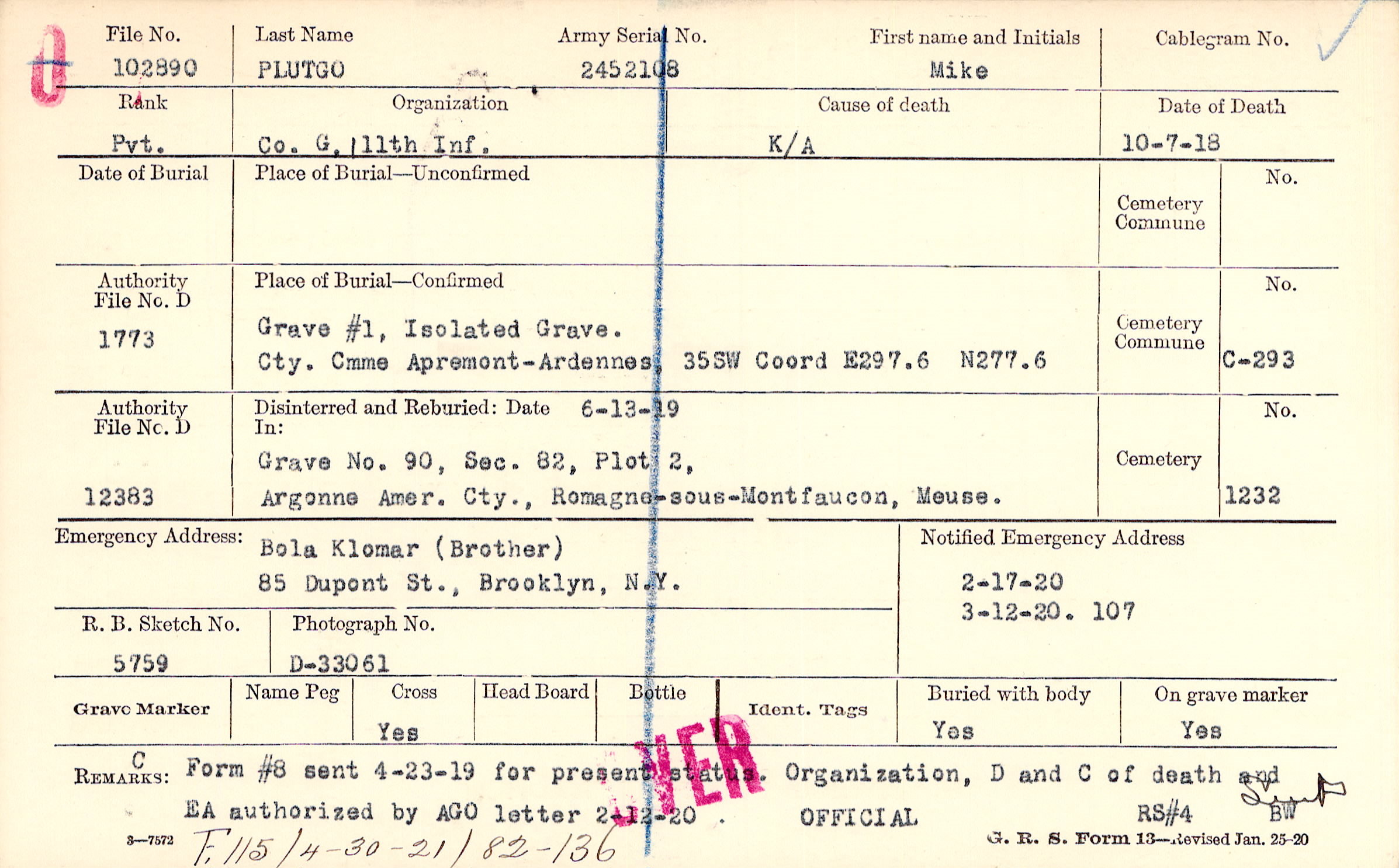 Army Serial No. |