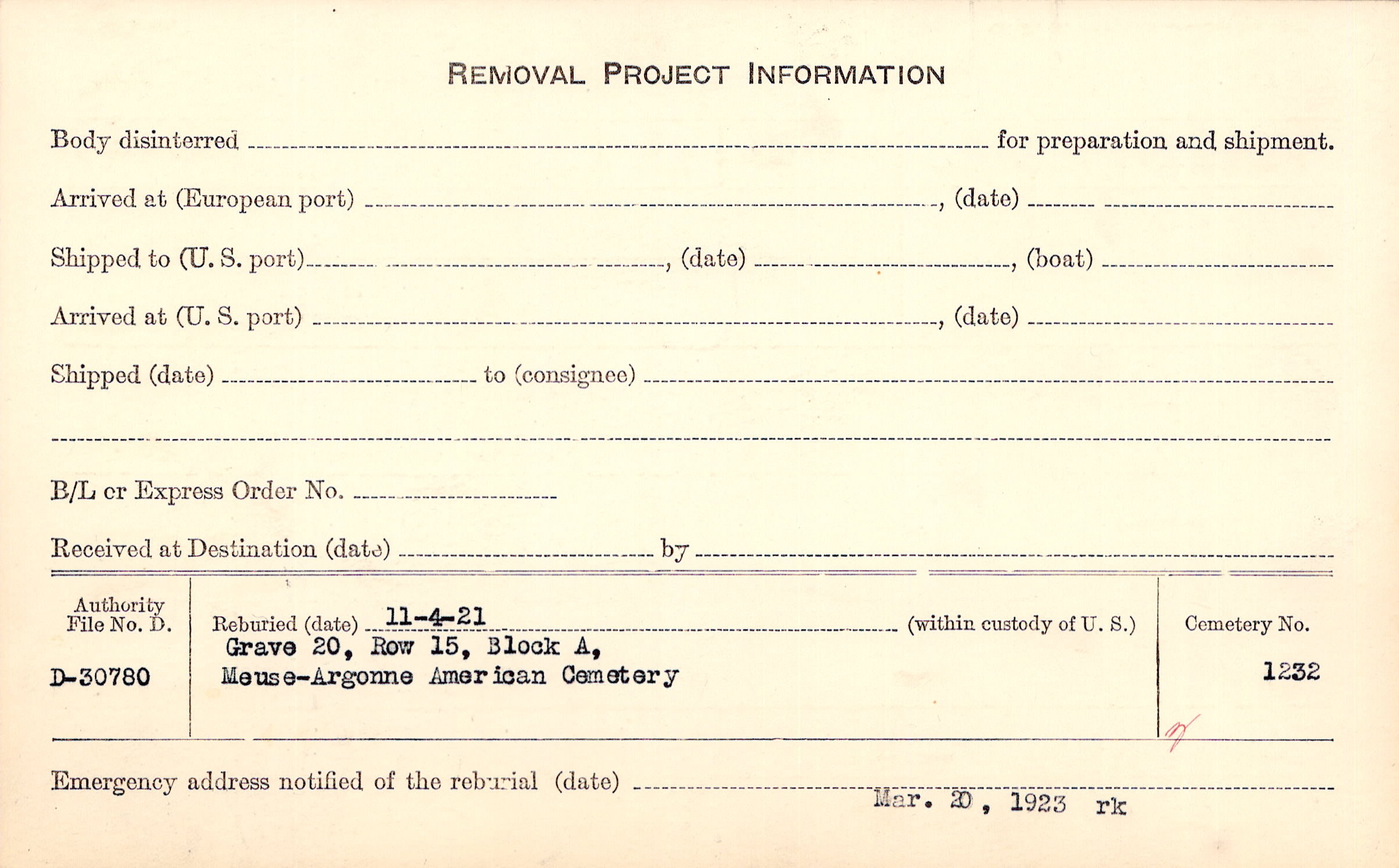 | Permanent Burial in Foreign Cemetery |