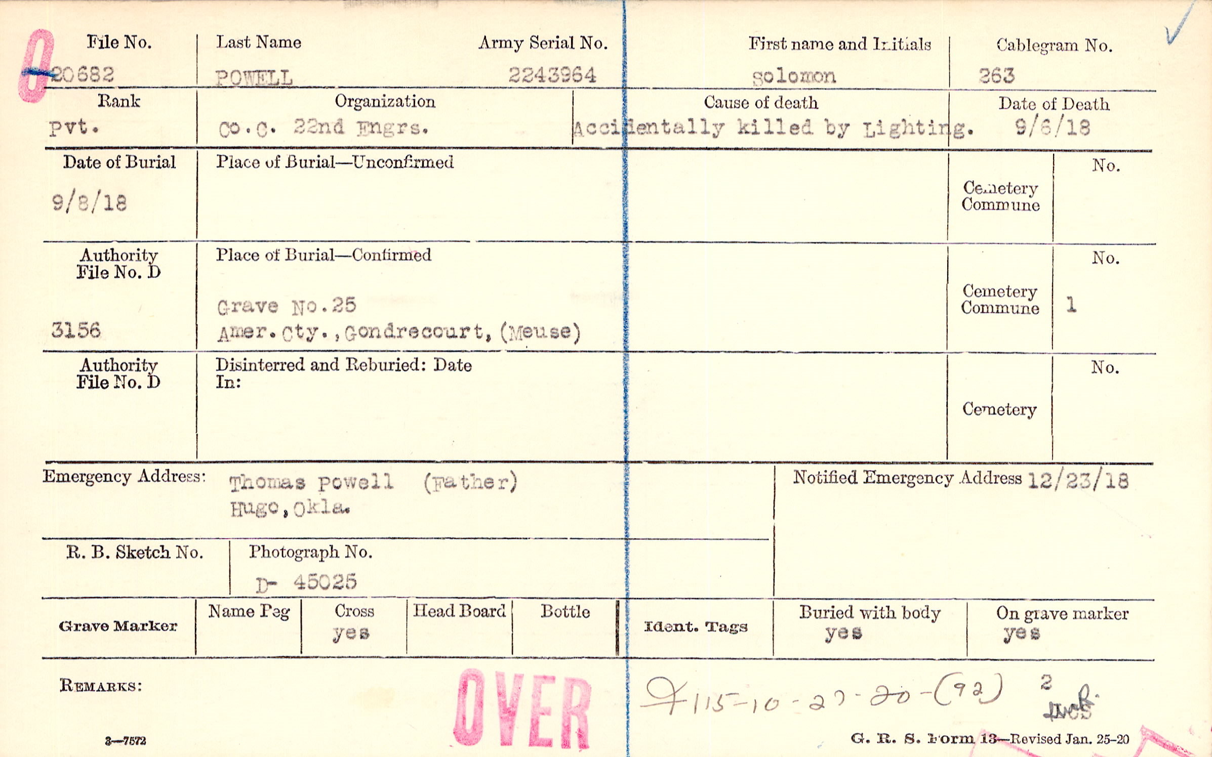 Grave 25, Amer. Cty., Gondrecourt, Meuse