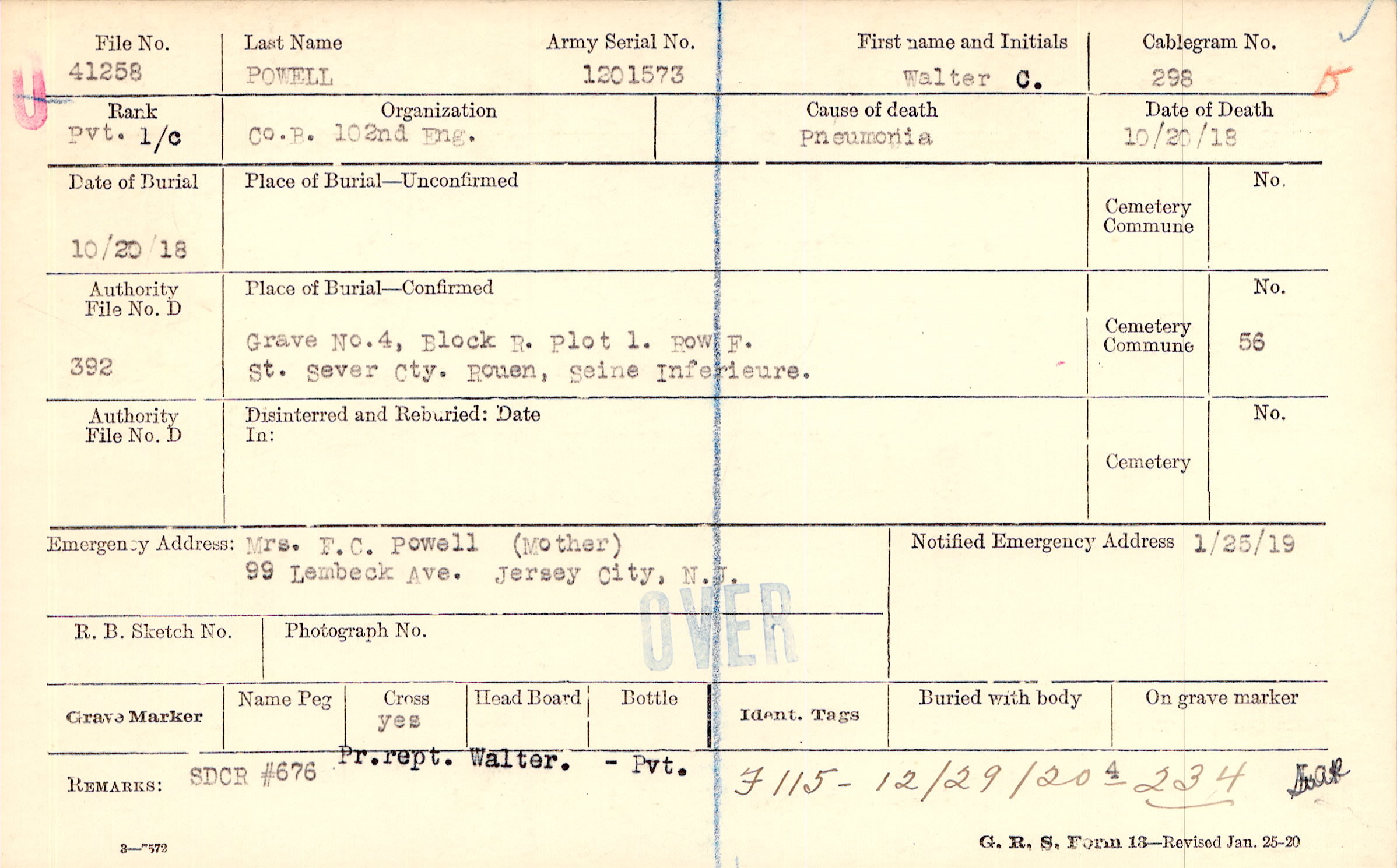 Mrs. F.C. Powell (Mother), 99 Lembeck Ave. Jersey City, N.J.