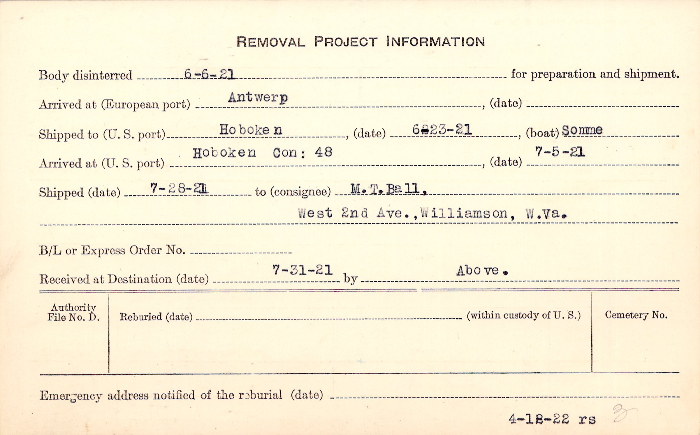 to M. T. Ball, West 2nd Ave., Williamson, W. Va.