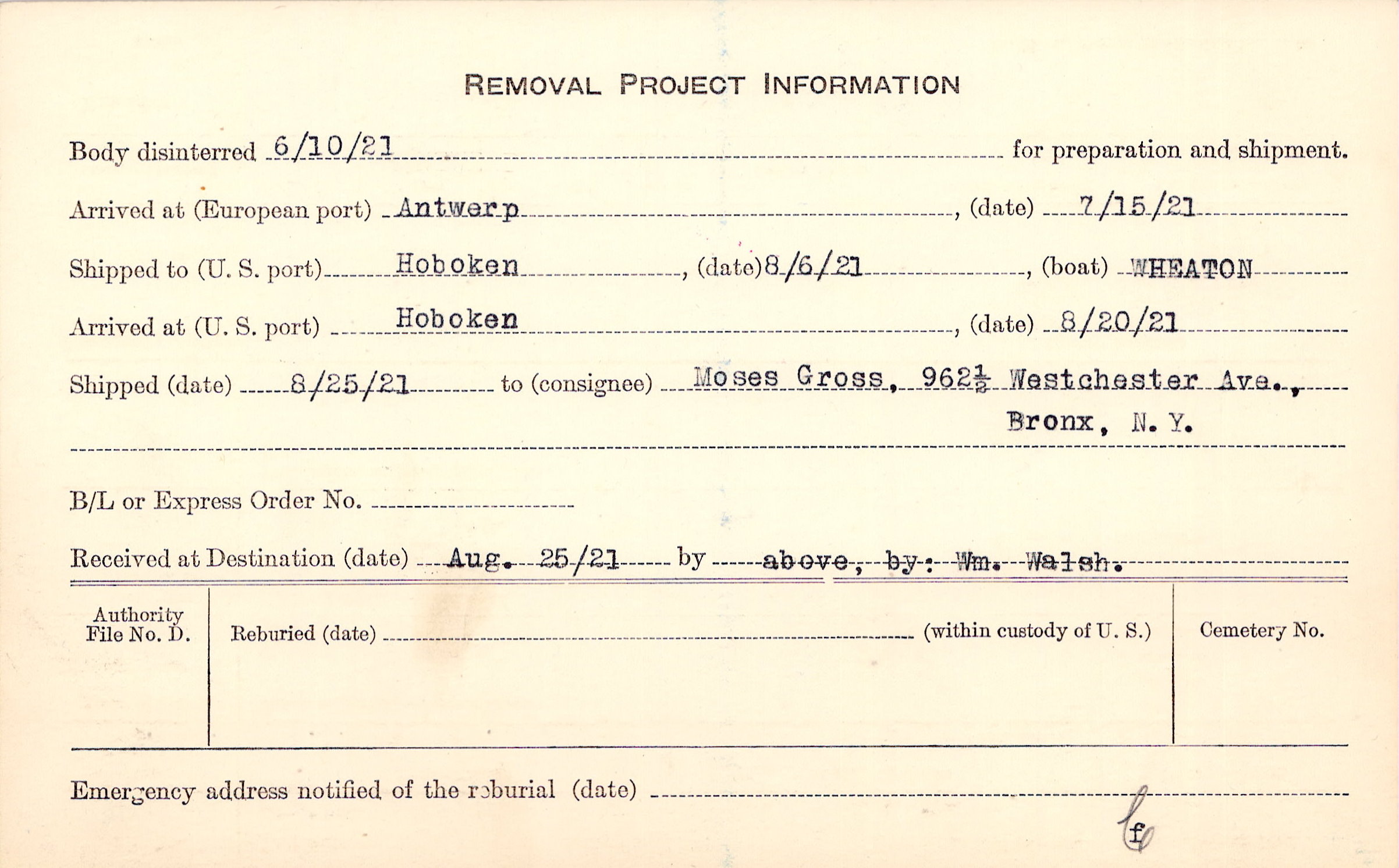 to Moses Gross, 962½ Westchester Ave., Bronx, N. Y.
