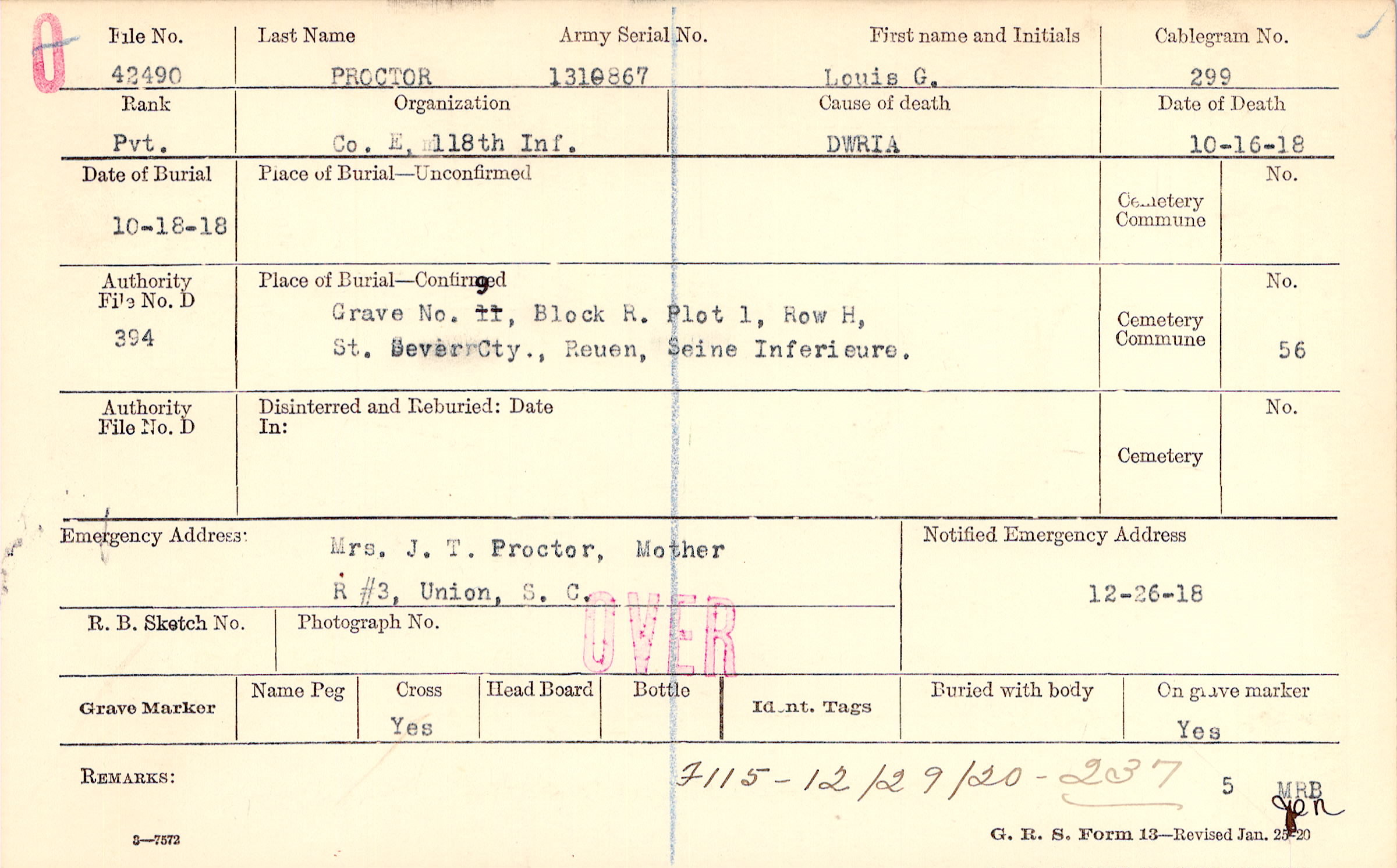 Grave 9, Block R, Plot 1, Row H, St. Sever Cty., Reuen, Seine Inferieure.