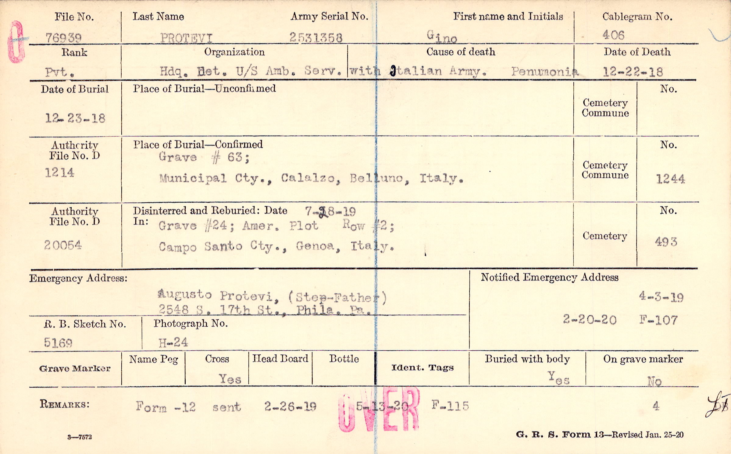 Augusto Protevi, (Step-Father), 2548 S. 17th St., Phila. Pa.