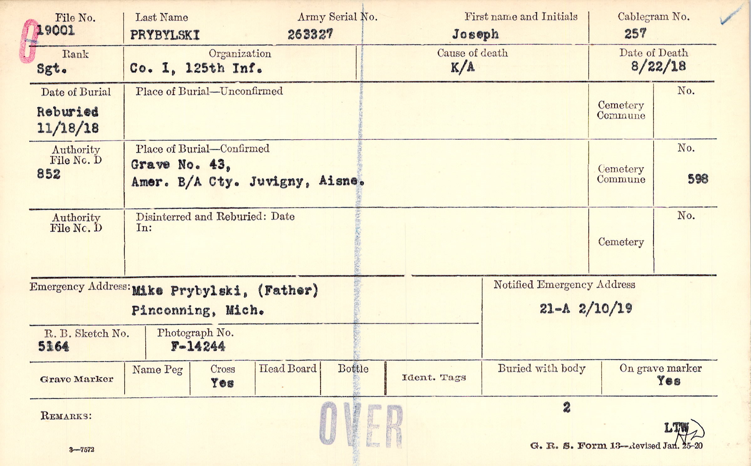 Grave 43,Amer. B/A Cty., Juvigny, Aisne.