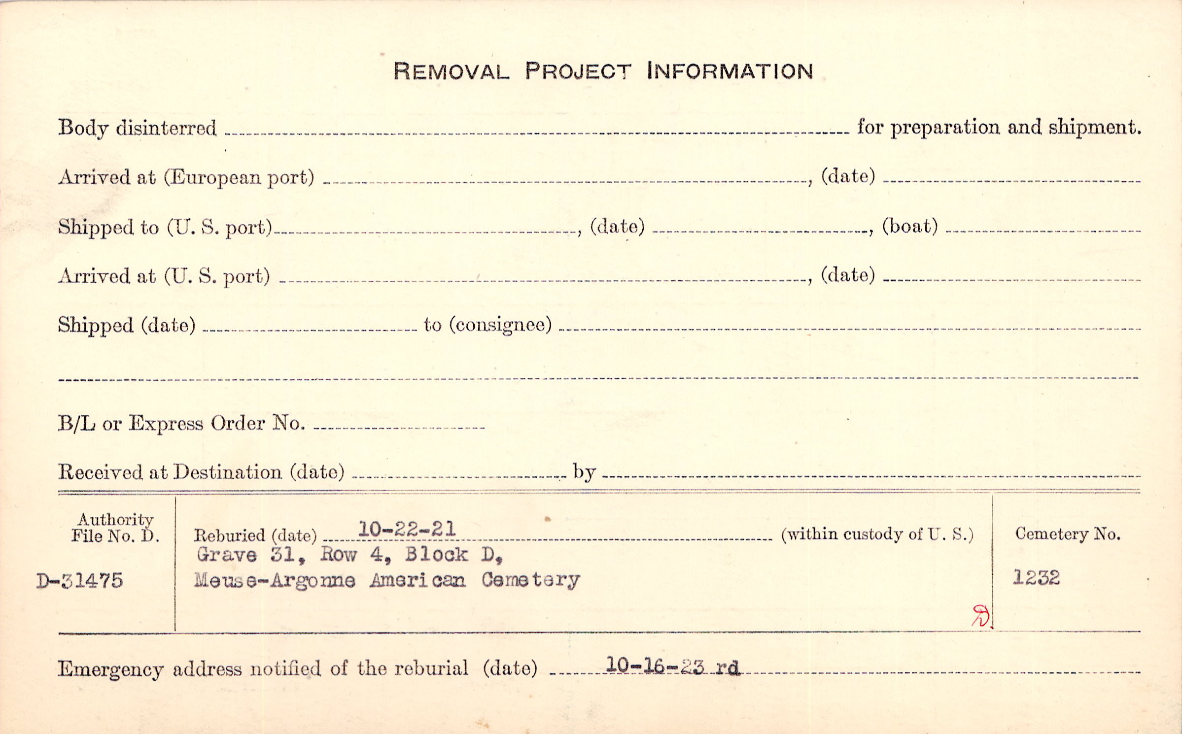Grave , 16, Plot D, Row 2, Amer. Cty., Fleury-sur-Aire, Meuse.