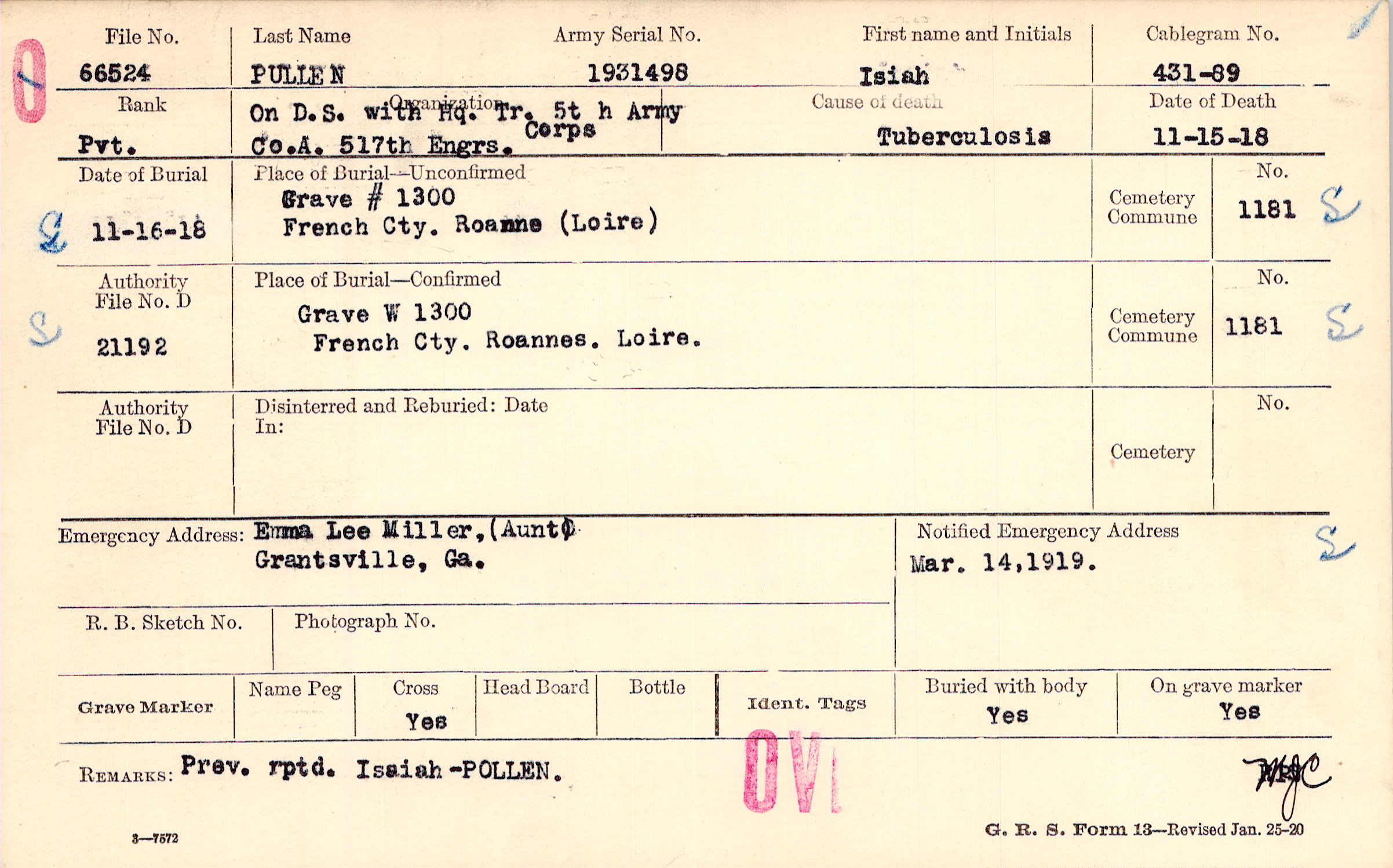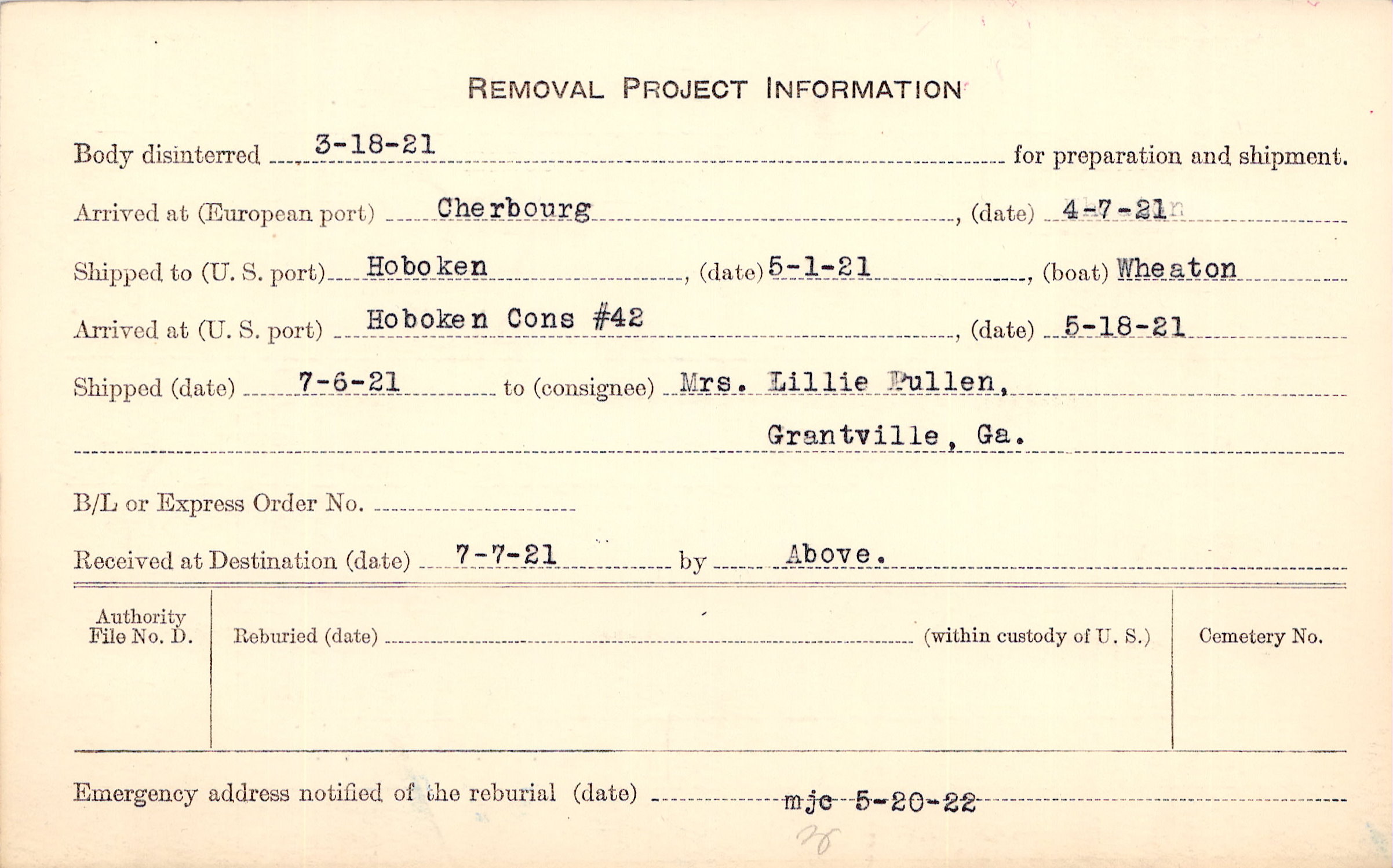 to Mrs. Lillie Pullen, Grantville, Ga.