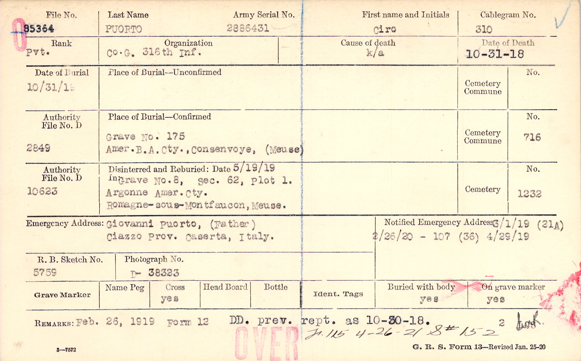 Grave 175, Amer. B/A Cty., Consenvoye, Meuse