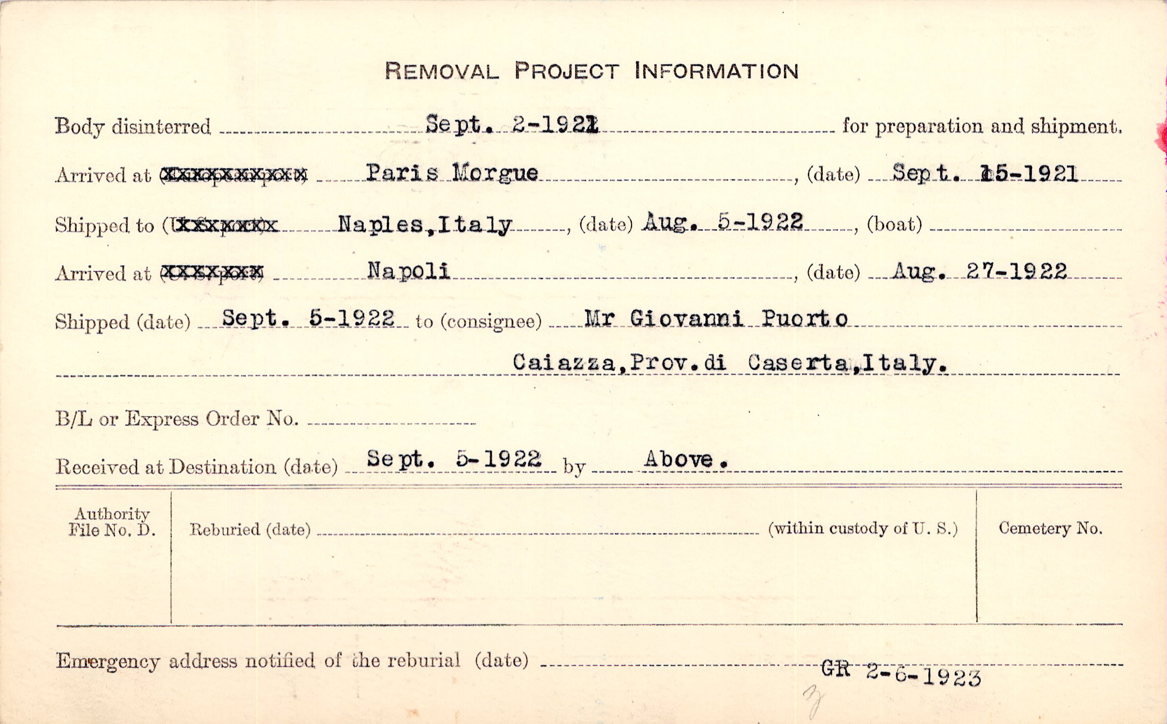 to Mr Giovanni Puorto, Caiazza, Prov. di Caserta, Italy.