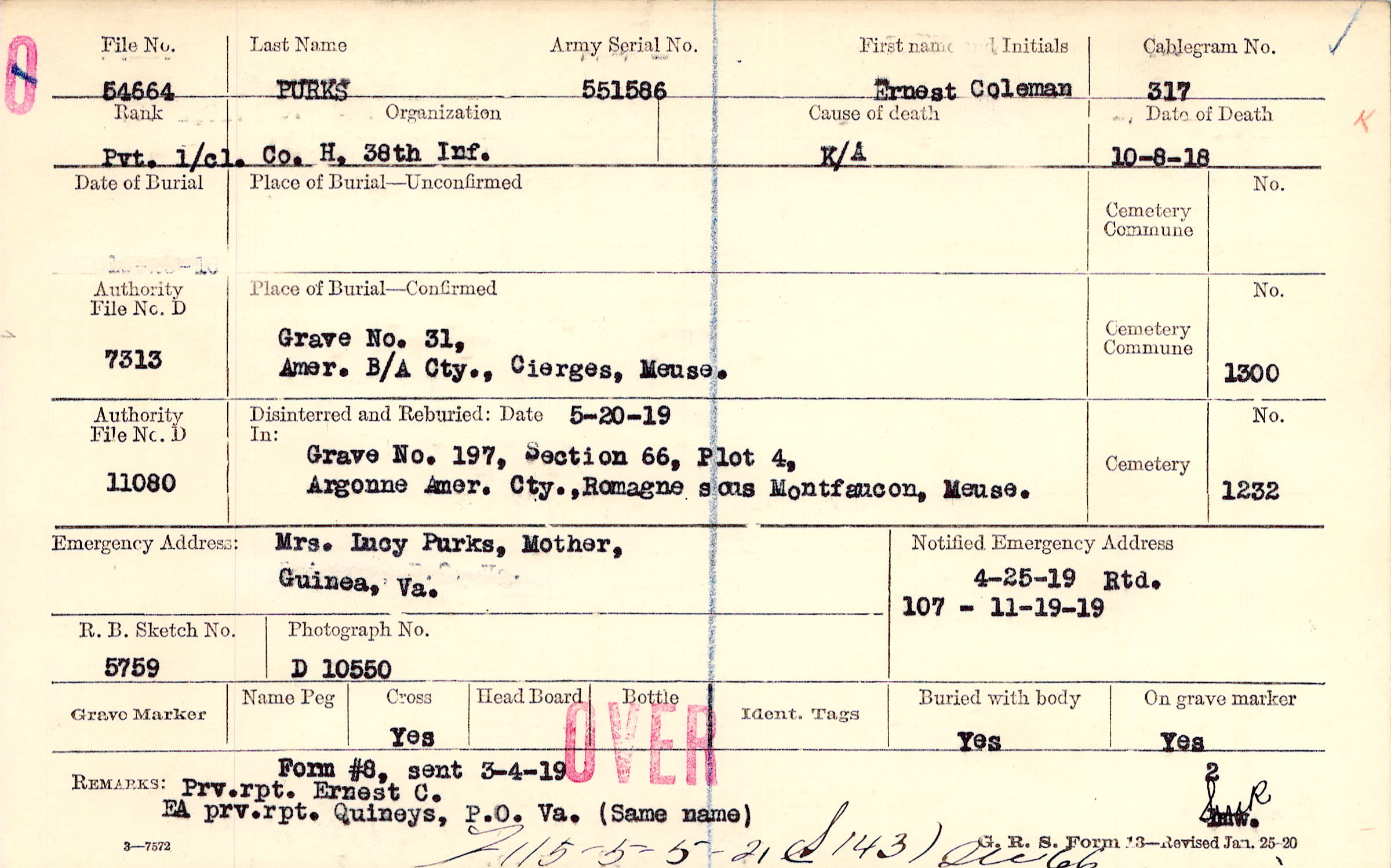 4/25/1919 Rtd, Form 107: 11/19/1919