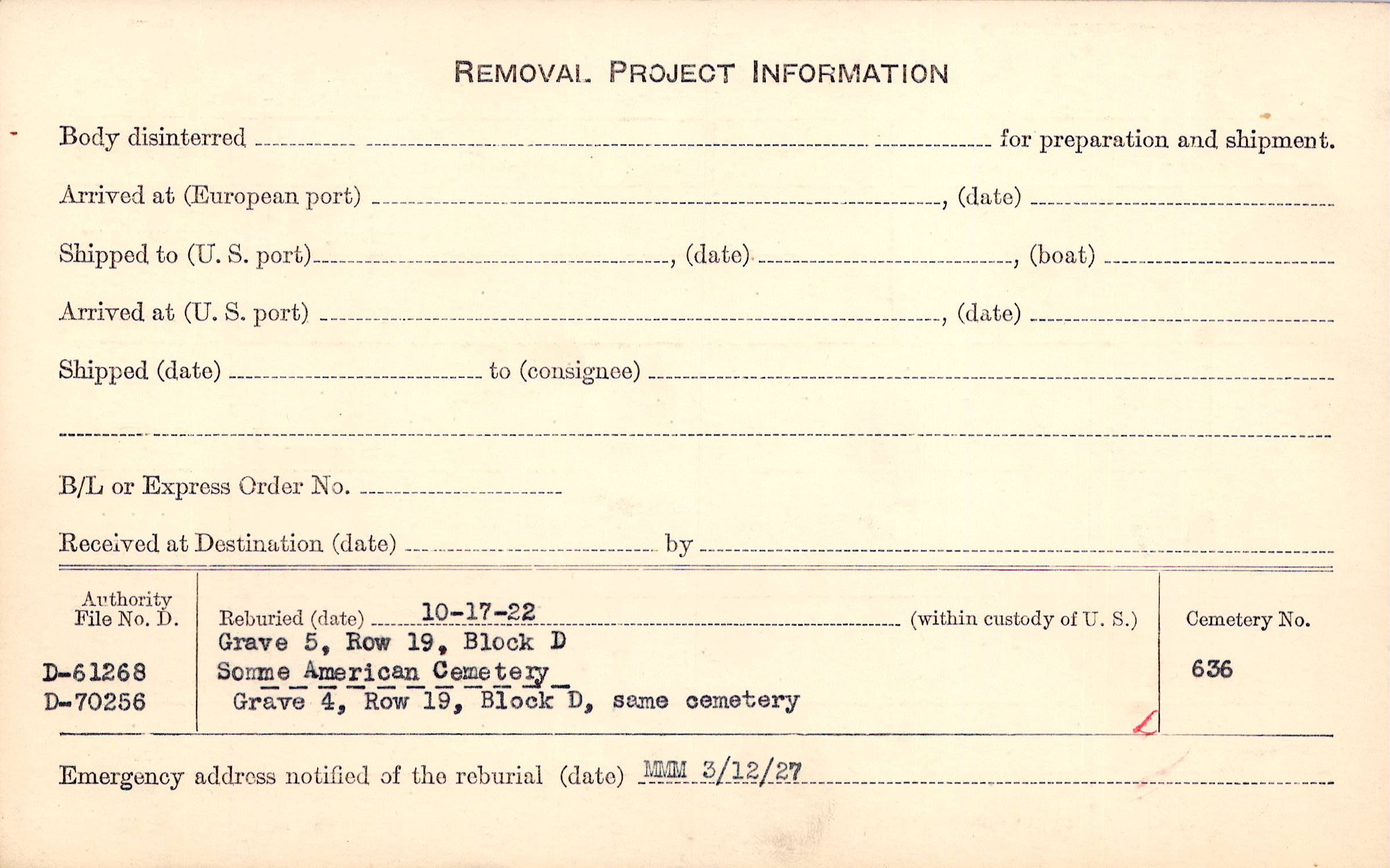 Prior Burial in Foreign Cemetery |